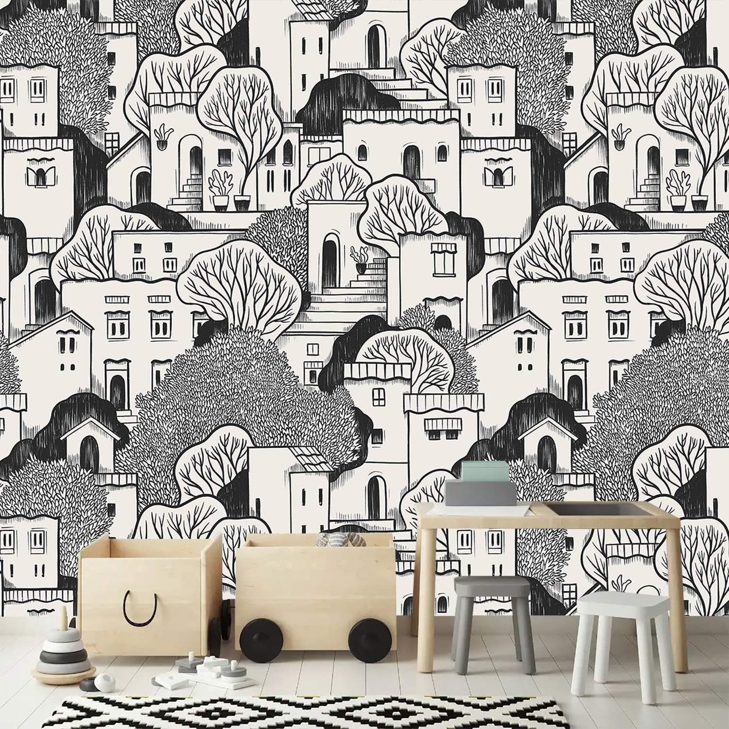 AFZEVEB-Black House with Trees Nursery Wallpaper murals for Bedroom 136"x96" (Not Peel and Stick)