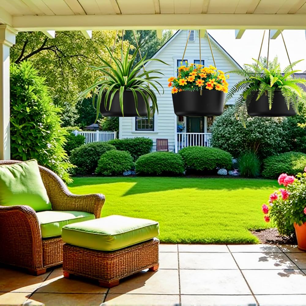 10.7 Inch Hanging Planter for Outdoor Indoor Plants,2 Pack Hanging Flower Pots with Drain Holes for Garden Home Decor Use (Black)