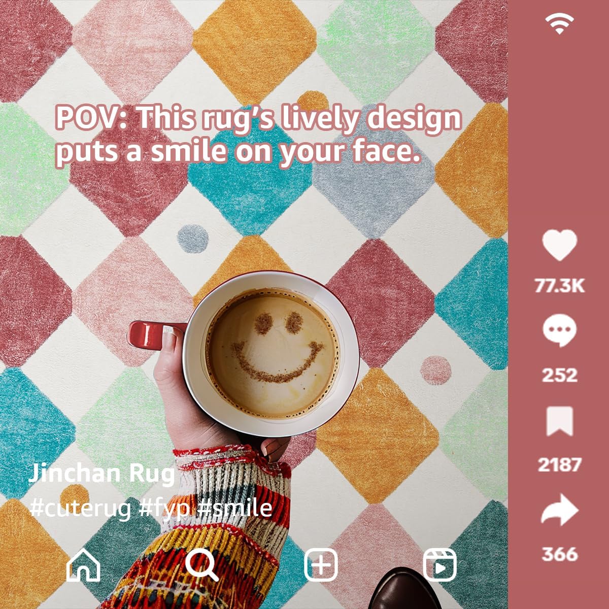 - Warm Vintage Colorful Design: Adorned with delightful diamond lattice splicing pattern against a soft cream bottom, this rug adds a playful charm to children's rooms and infuses vitality into adult spaces