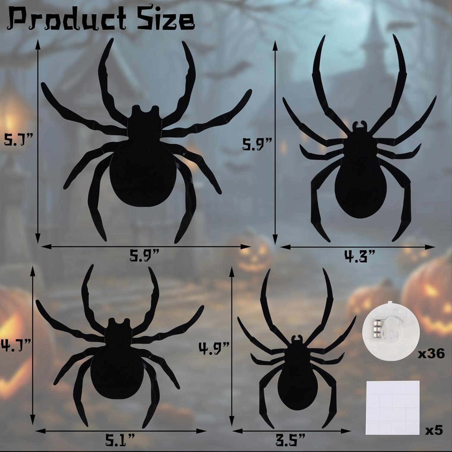 - Halloween LED Spider Set – Spookier than Ever: This Halloween spider decoration set includes 36 spiders Stickers, 36 LEDs( 24 purple flashing lights, 12 alternating red and blue lights), 80 pack adhesive tapes and an installation instruction. Unlike standard Halloween wall decor, these light-up spiders will make your Halloween home decor and haunted display even more eye-catching.
