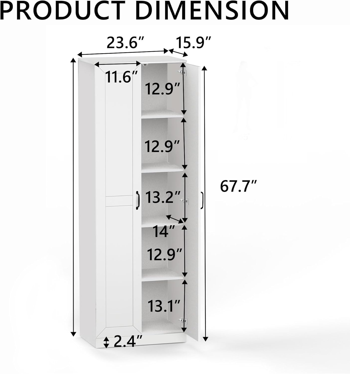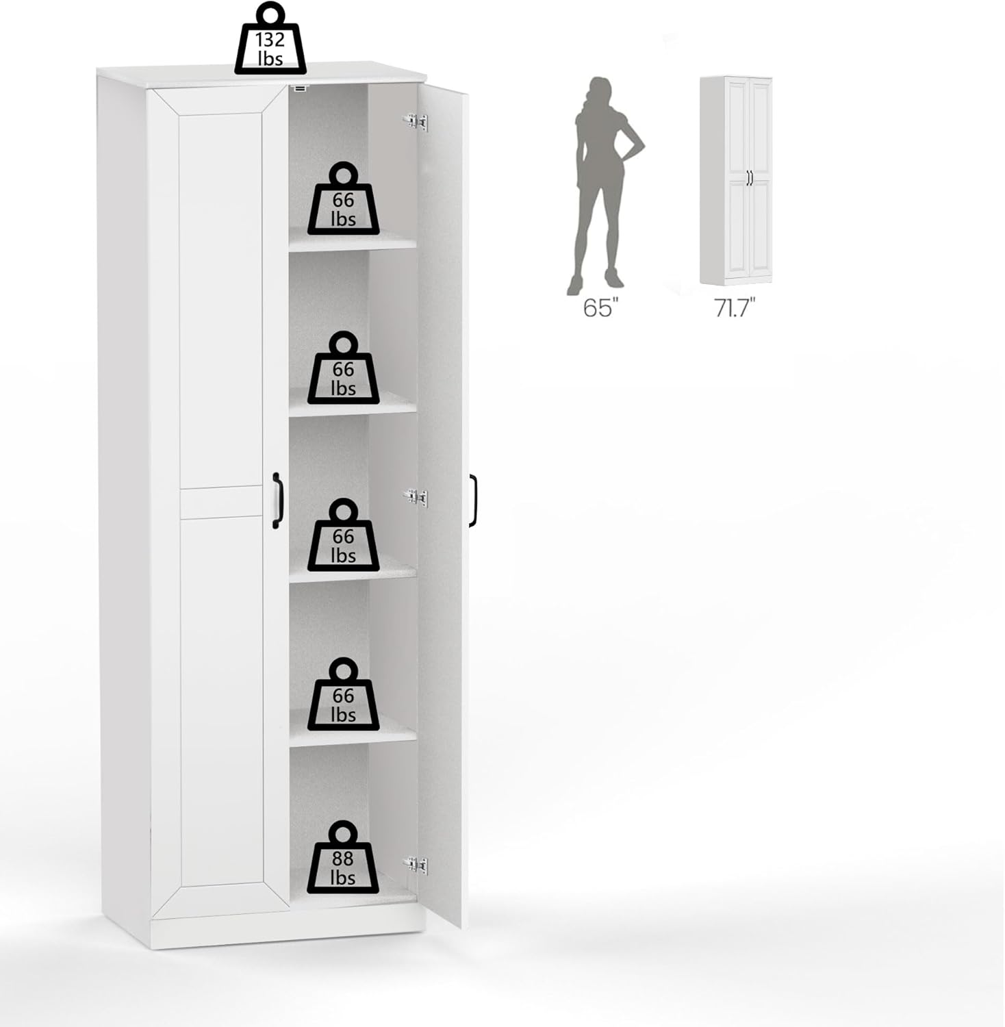 71" Tall Pantry Cabinet/Storage Cabinet, Wood Cupboard with 2 Door and 3 Adjustable Shelves for Kitchen, Dining Room, Living Room, Bathroom (Style 2)