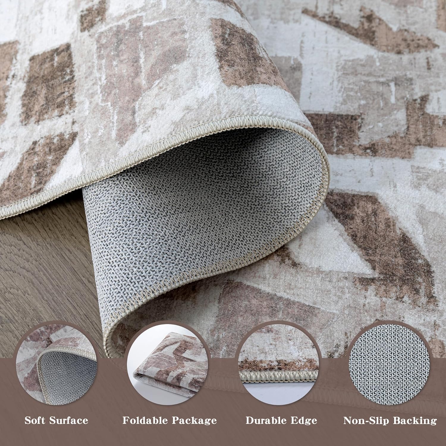 Modern Abstract 8X10 Area Rug for Living Room Bedroom Washable, Non-Slip Rubber Backing Print Faux Wool Thin, Brown Throw Large Carpet for Kids Playroom Dining Room Pet & Child Friendly