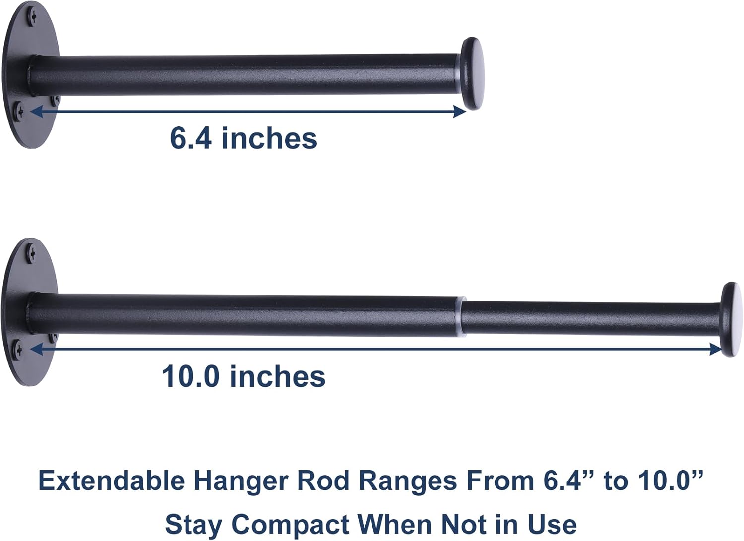 - Extendable Design: Hanger rod can extend from 6.4" to 10", holding up to 37 plastic hangers per rod while staying compact when not in use.