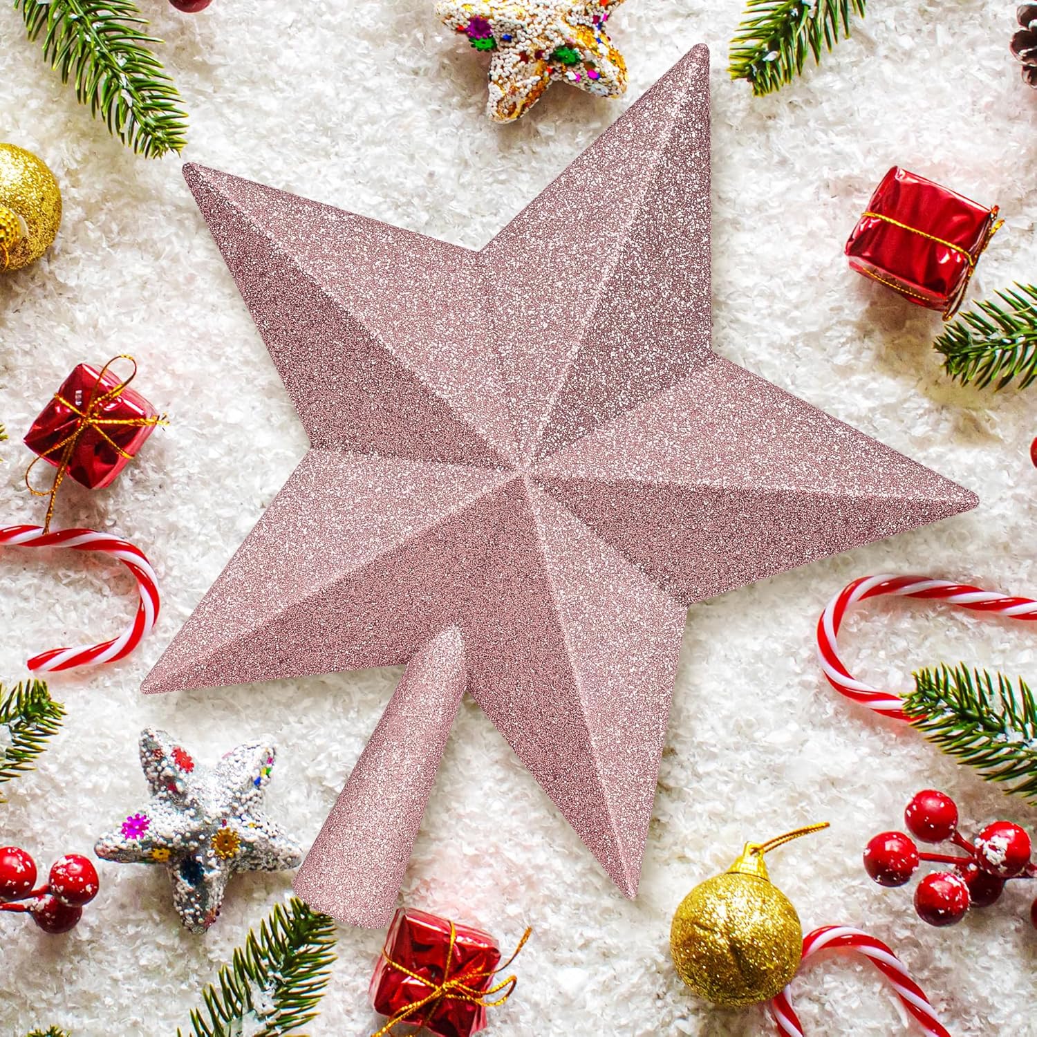 Christmas Tree Top Ornament, 10" Rose Gold Christmas Star Tree Topper, Large Xmas Glitter 3D Bethlehem Tree Topper Ornament, Waterproof Holiday Christmas Tree Topper Star for Home Indoor Outdoor