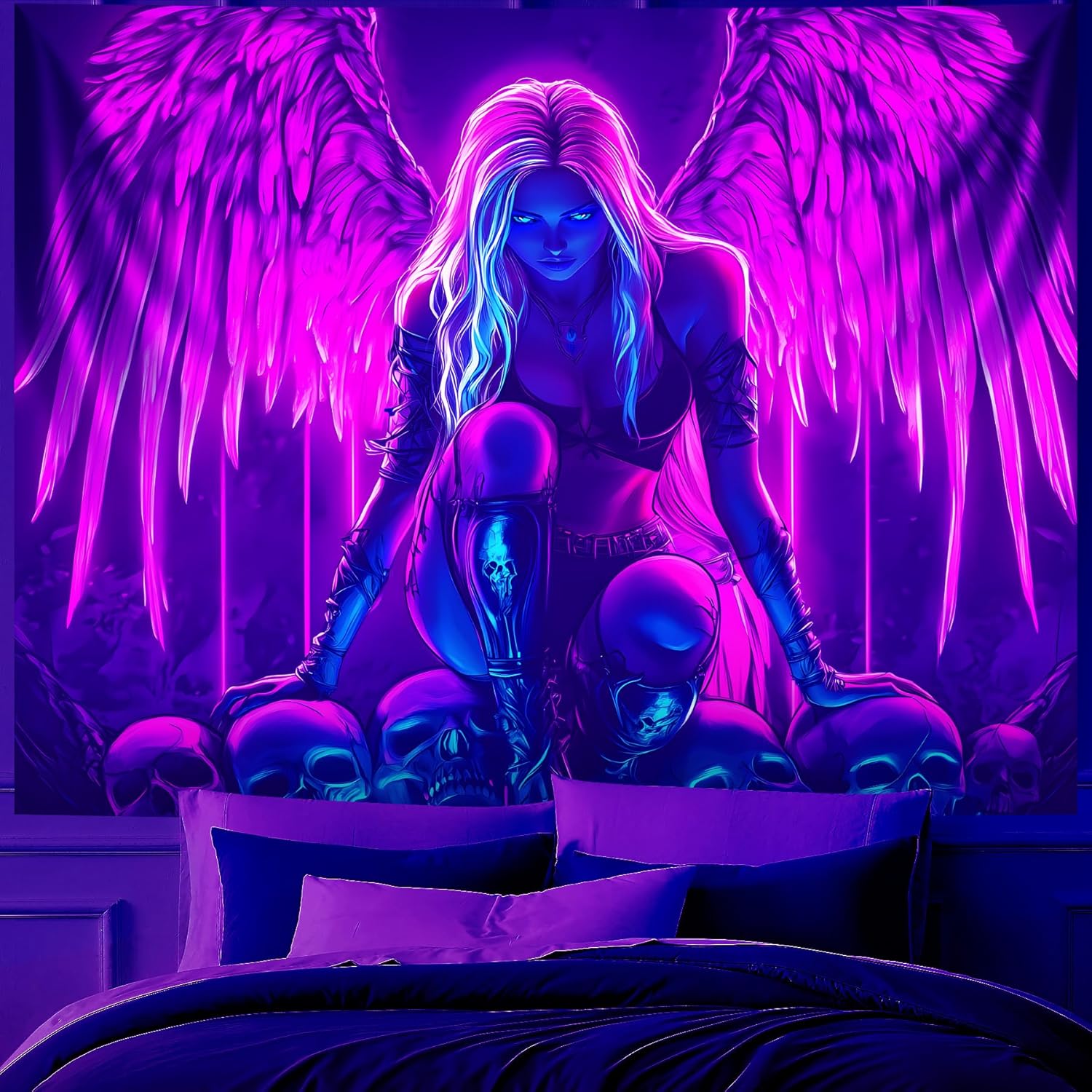 - 【Blacklight/UV Reactive】 Due to the special ink and advanced technology, the blacklight wing tapestry's colors can be changed under Black Light or UV Reactive Light. You can enjoy different effects by kinds of light, the tapestry will be amazing. Under normal light, the colors are also beautiful.