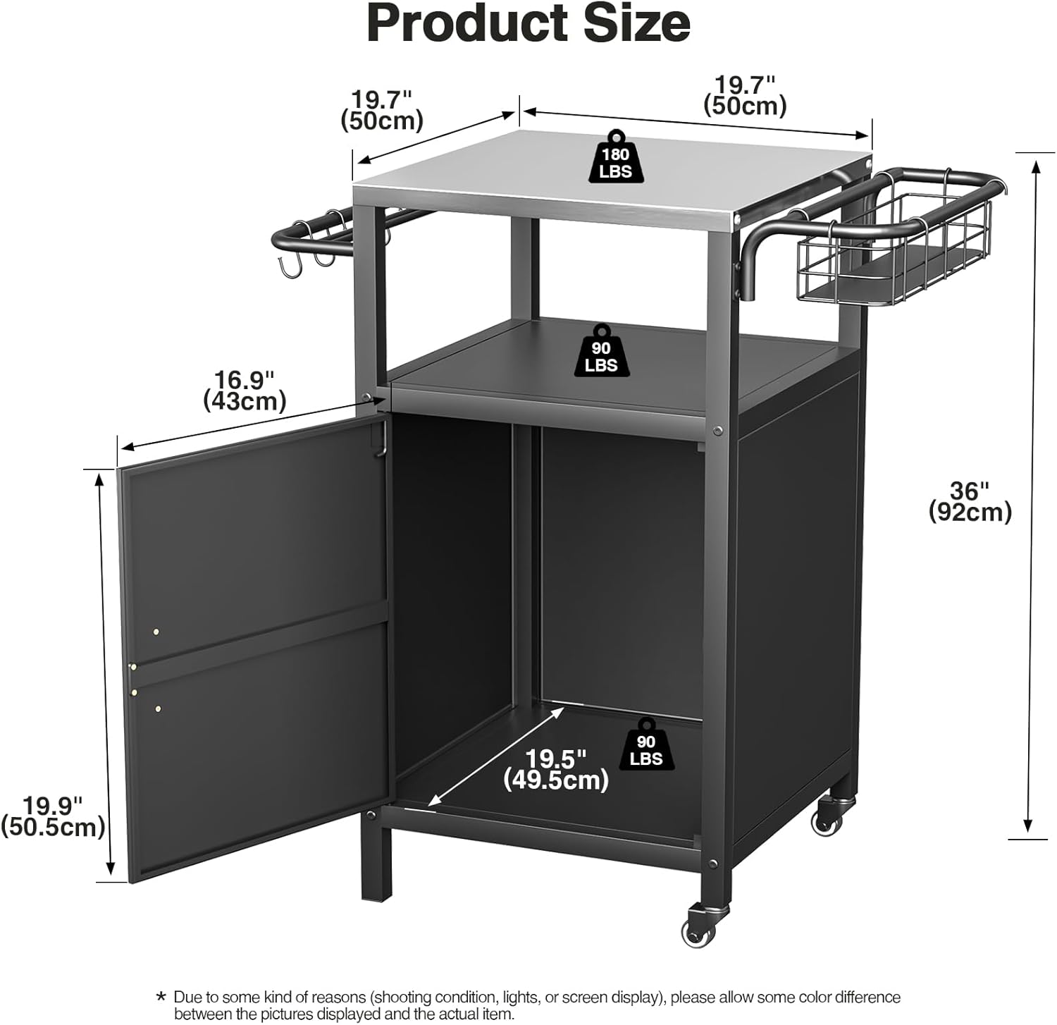 - Storage Space Capacity: Elevate your outdoor and indoor spaces with this versatile cart. Not only does this cart feature a high-quality stainless steel surface for prep, it also provides storage space to easily organize your essentials. It can store napkins, plates, drinks, and more for easy use in any setting
