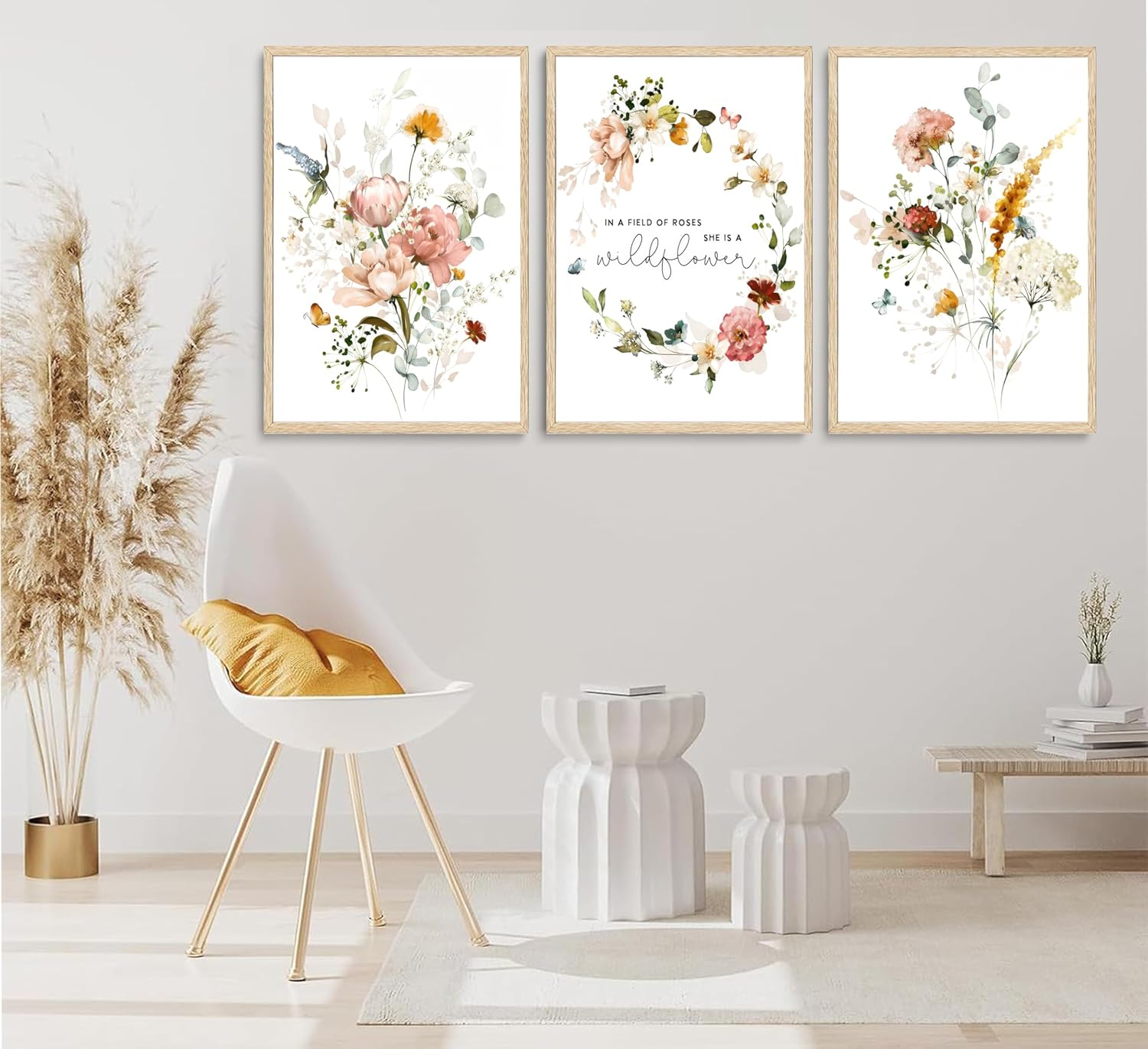 - 【Pink Wildflowers Wall Art Size】:12x16in;Discover the charm of our Wildflower Wall Art, featuring a stunning set of 3 watercolor flower canvases, No frame included. You can put our prints in a beautiful frame.