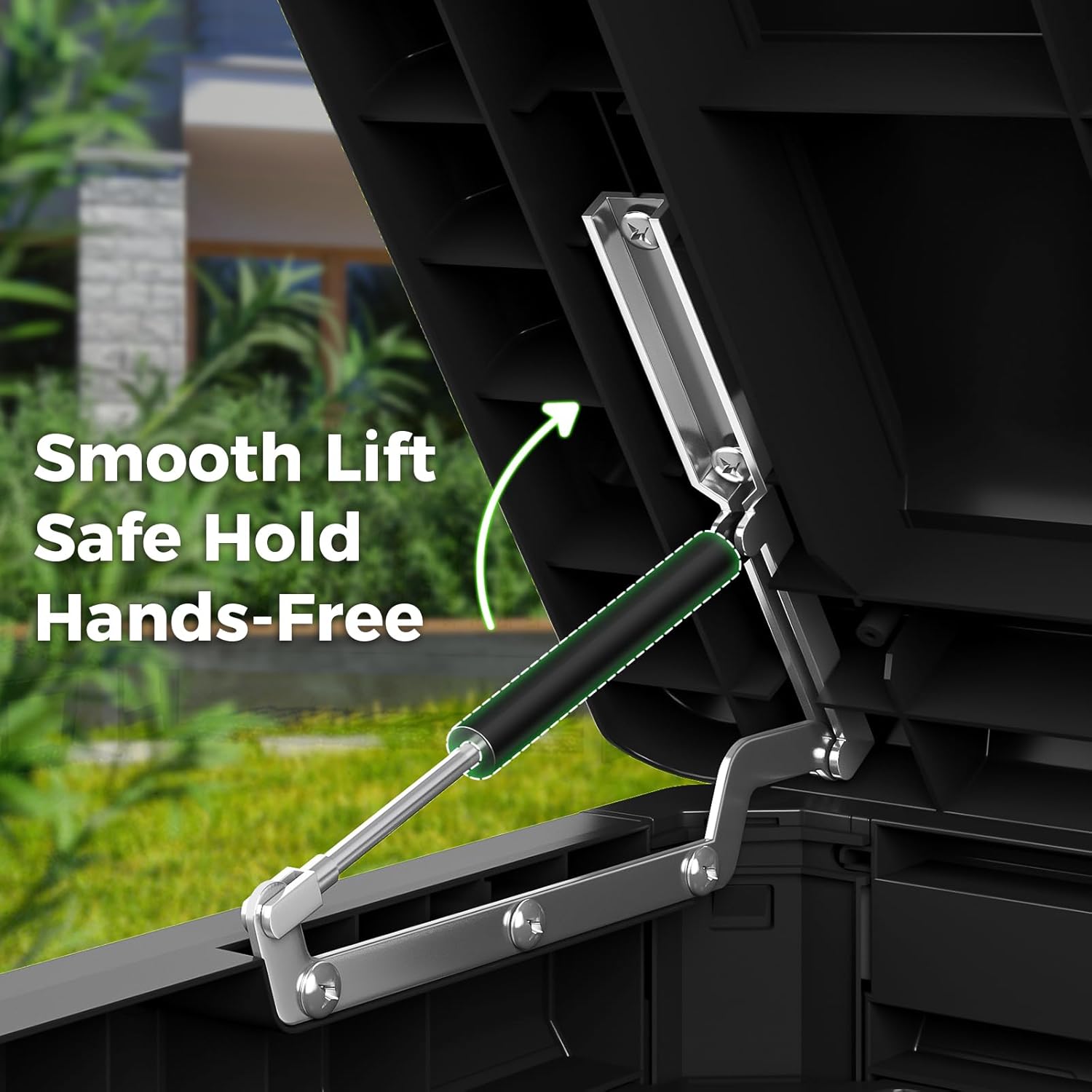 - 【Safe Haven Design】The smooth-closing hydraulic lid on this outdoor resin patio box prevents accidental slams, while reinforced locking points (lock not included) keep stored items safe