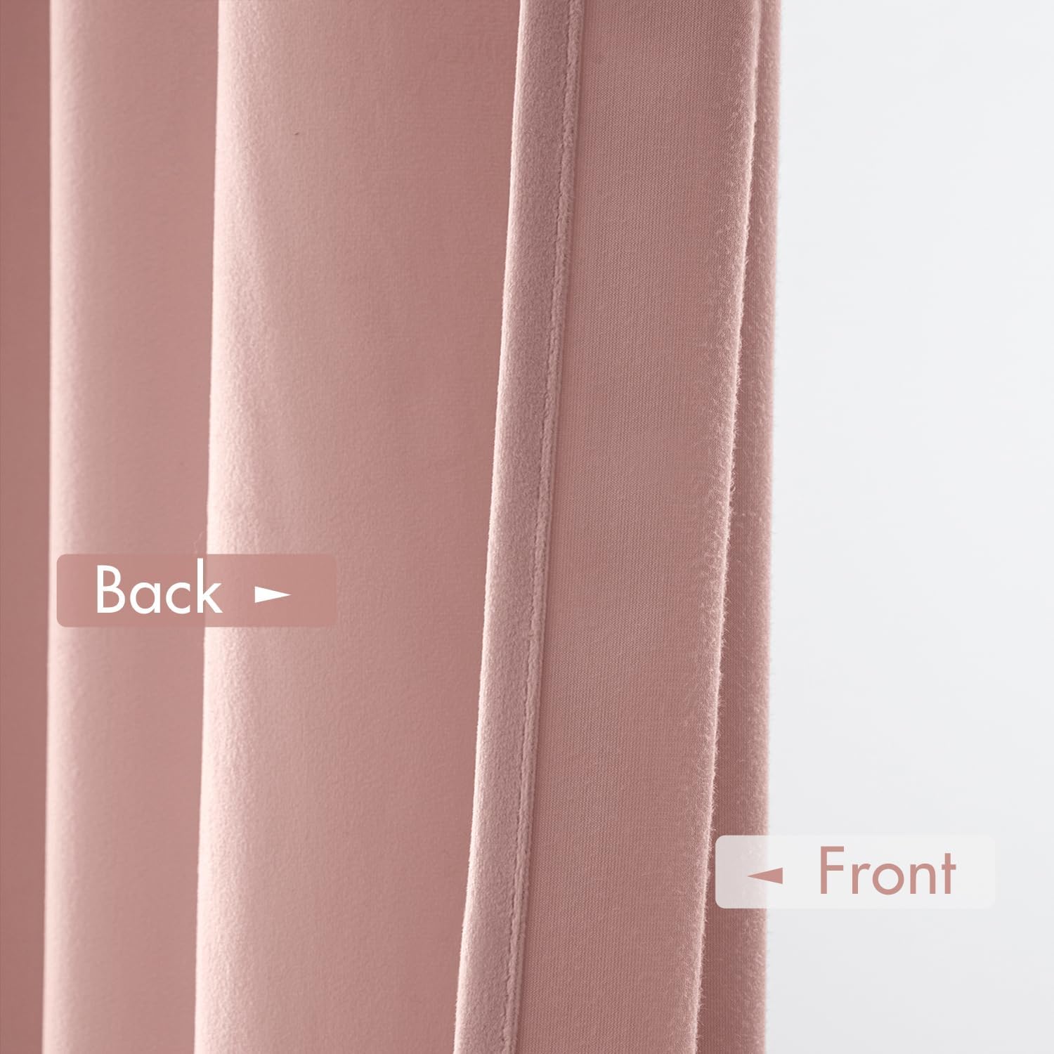 MIULEE Baby Pink Velvet Curtains Thermal Insulated Blackout Curtain Drapes for Bedroom Living Room Darkening 90 Inches Long Curtains Panels Rod Pocket Set of 2