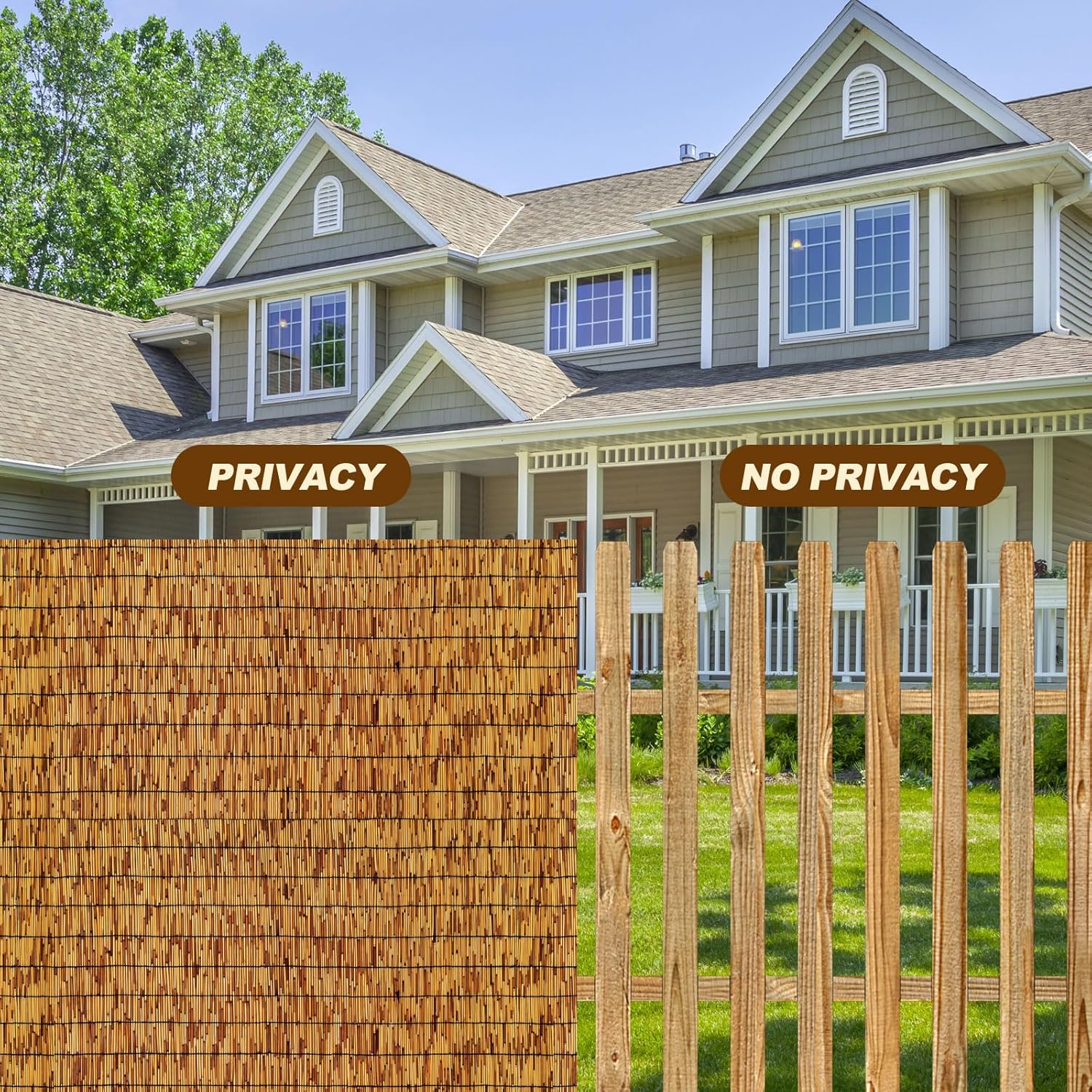 - Privacy Fence Screen:Reed Fences are Amazing in Color and Opacity,The Bamboo reed Fencing Blocks the sun and the view of Neighbours,In additionour reed privacy screen can help hide flawed walls,replace old fences,improve backyard/balcony privacy and even prevent pets from jumping out from the balcony