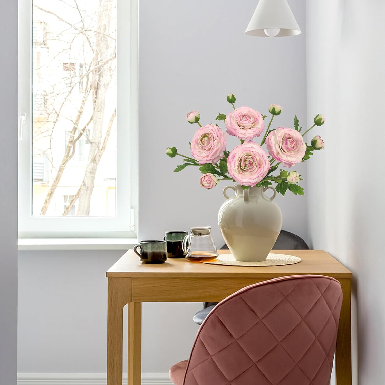 - Easy Maintenance: Faux ranunculus flowers withstands indoor humidity and sunlight without watering, wilting, or shedding.These artificial flowers stems withstand indoor heat and humidity, staying pristine throughout multi-day celebrations