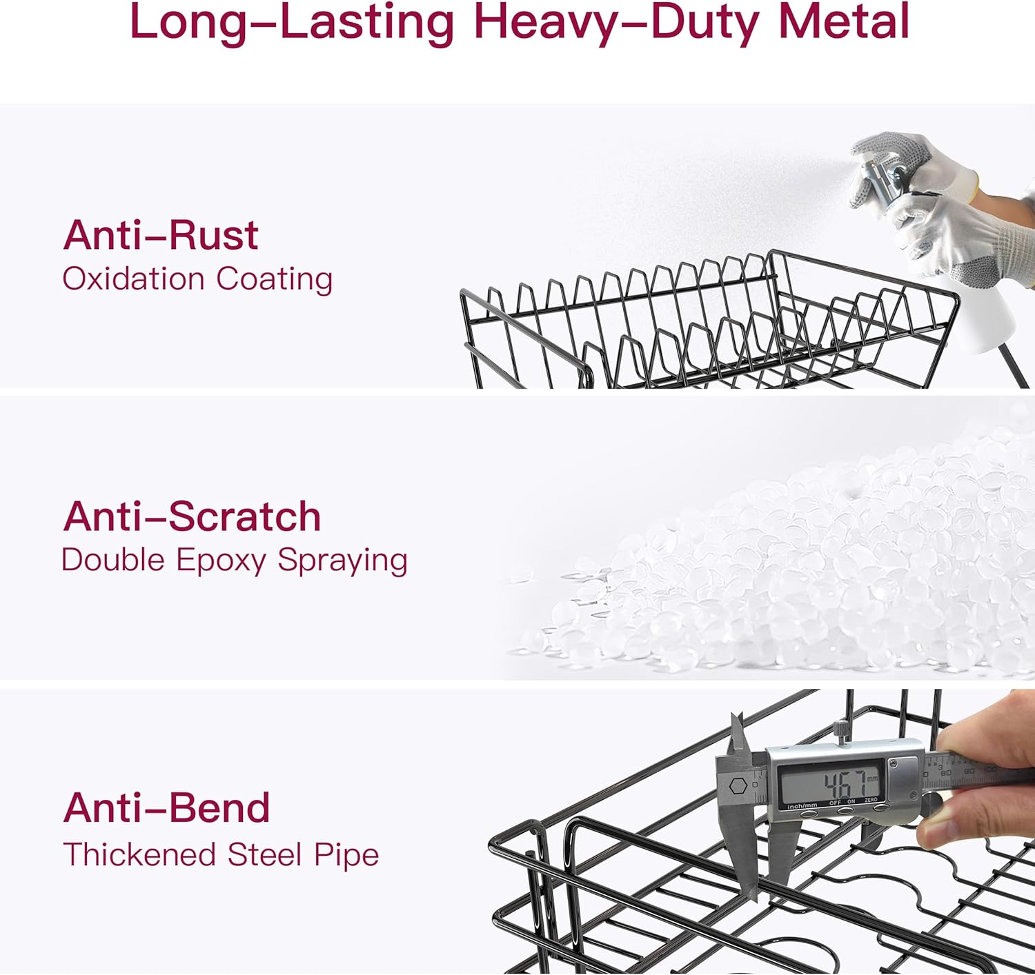 - 🔩 Rust-Resistant & Heavy-Duty Metal Dish Drying Rack: Durable metal dish drying rack with anti-oxidation coating. Withstands daily use—no bending, peeling, or wear over time