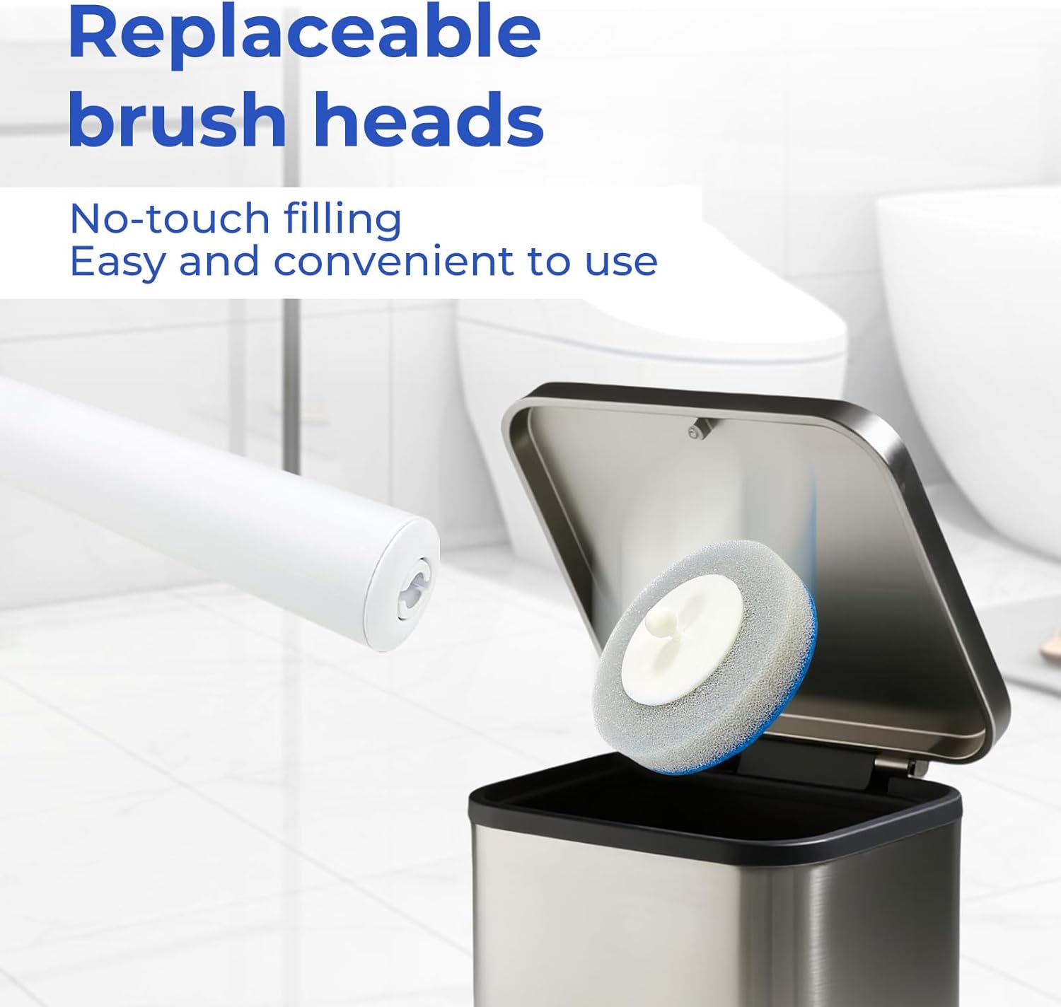 - DISPOSABLE SCRUBBING PADS:Never touch an icky toilet brush again,disposable scrubbing pads conveniently pop off into the trash so you can toss the mess every time