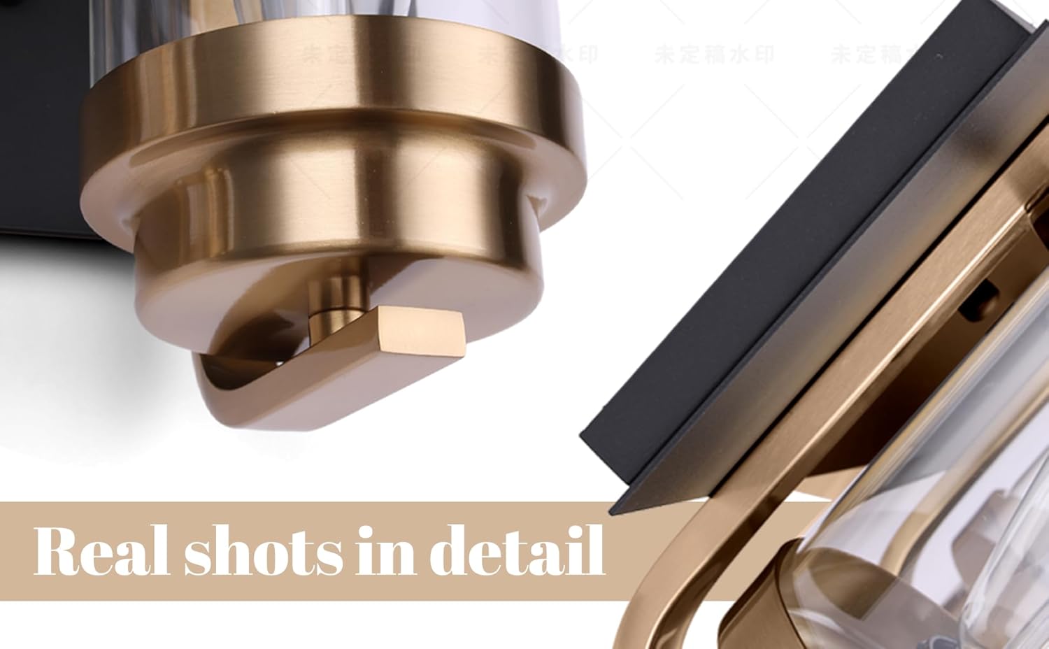 - Product Feature: Hardwired.Black gold bathroom light fixture with clear glass shade;Modern Wall Sconce lighting is easy to install and can be mounted as either up light or downlight.