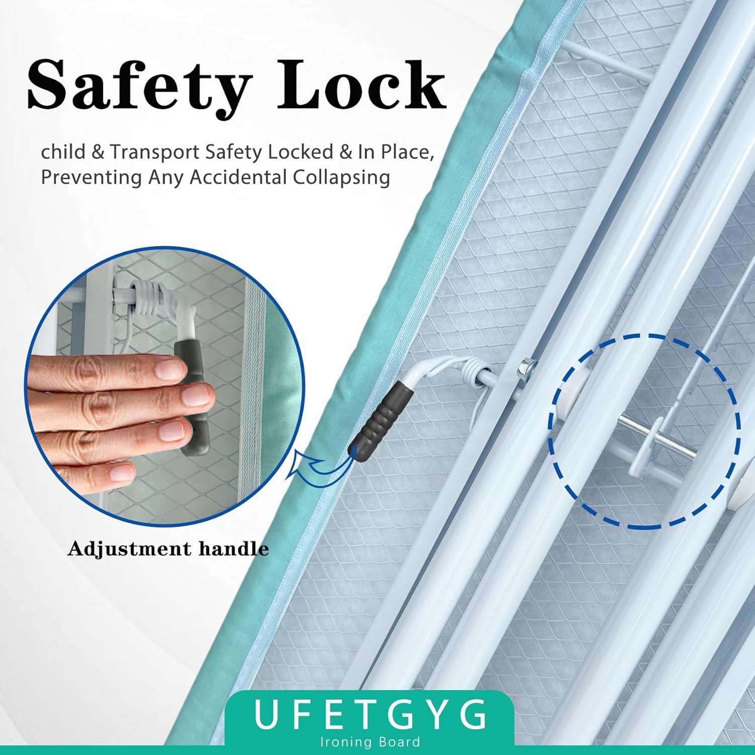 Ironing Board,Full Metal Construction| Height Adjustable, 43" X 13" W/with Iron Rest Heat & Scorch Resistant Fabric, Anti-Skid Feet, Heavy Duty| Easy to Fold