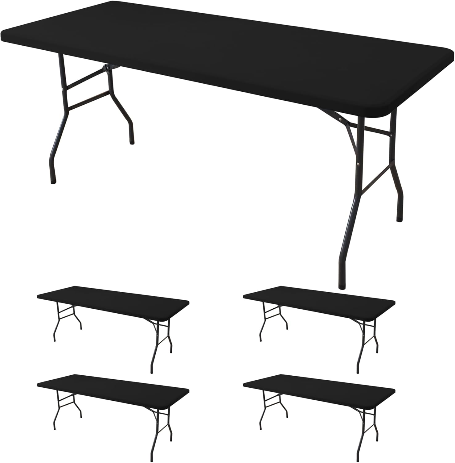 Fitted Tablecloth for 8 Foot Rectangle Tables-4 Pack Black Elastic Outdoor Picnic Table Cover-Spandex Stretch Folding Table Cloths 8ft for Camping Dining Room Patio Kitchen Banquet Party
