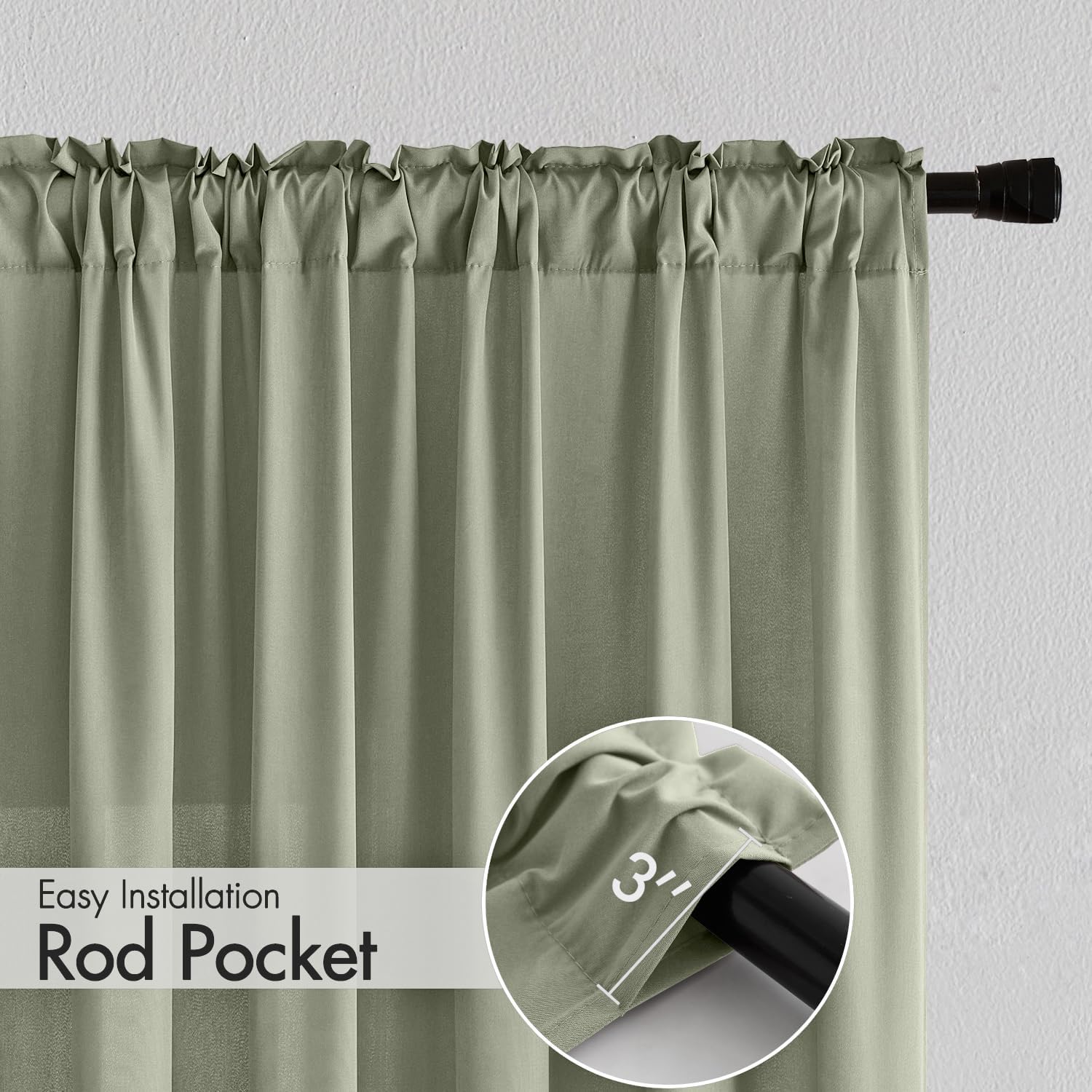 MIULEE Sage Green Privacy Sheer Curtains That Let Light in 96 Inches Long Non-See-Through Semi Sheer Curtain Light Filtering Window Curtains Drapes for Living Room Bedroom 2 Panels Set 42 X 96