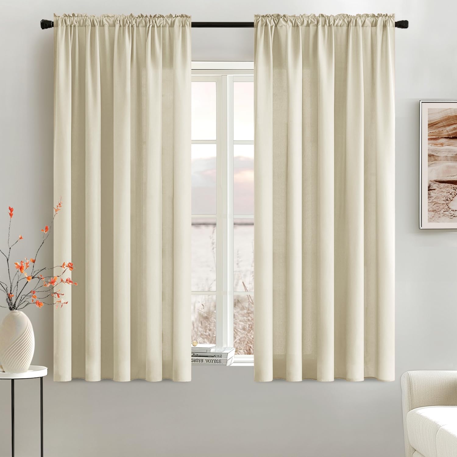 MIULEE Cream Beige Privacy Sheer Curtains That Let Light in 63 Inches Long Non-See-Through Semi Sheer Curtain Light Filtering Window Curtains Drapes for Living Room Bedroom 2 Panels Set 42 X 63