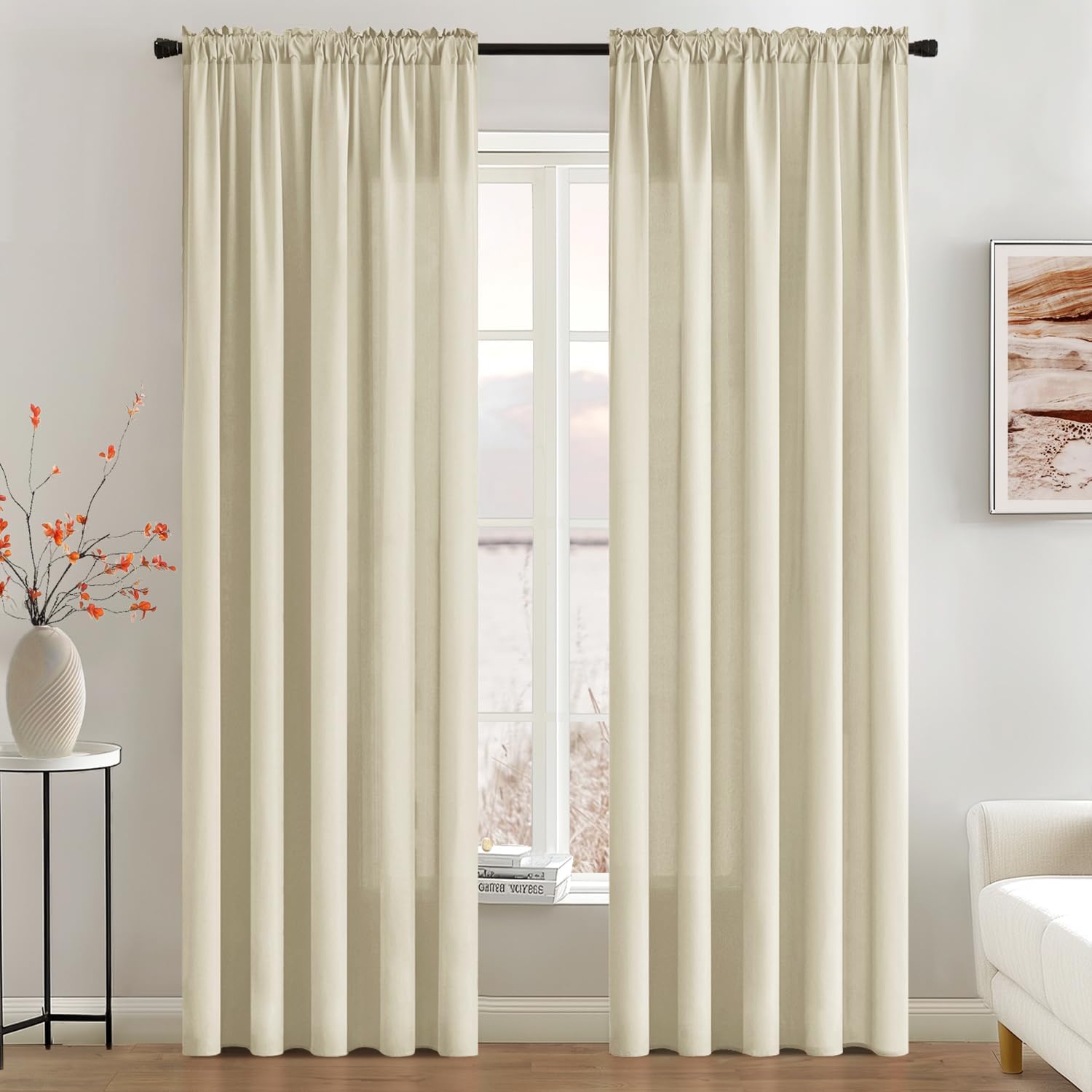 MIULEE Cream Beige Privacy Sheer Curtains That Let Light in 72 Inches Long Non-See-Through Semi Sheer Curtain Light Filtering Window Curtains Drapes for Living Room Bedroom 2 Panels Set 42 X 72