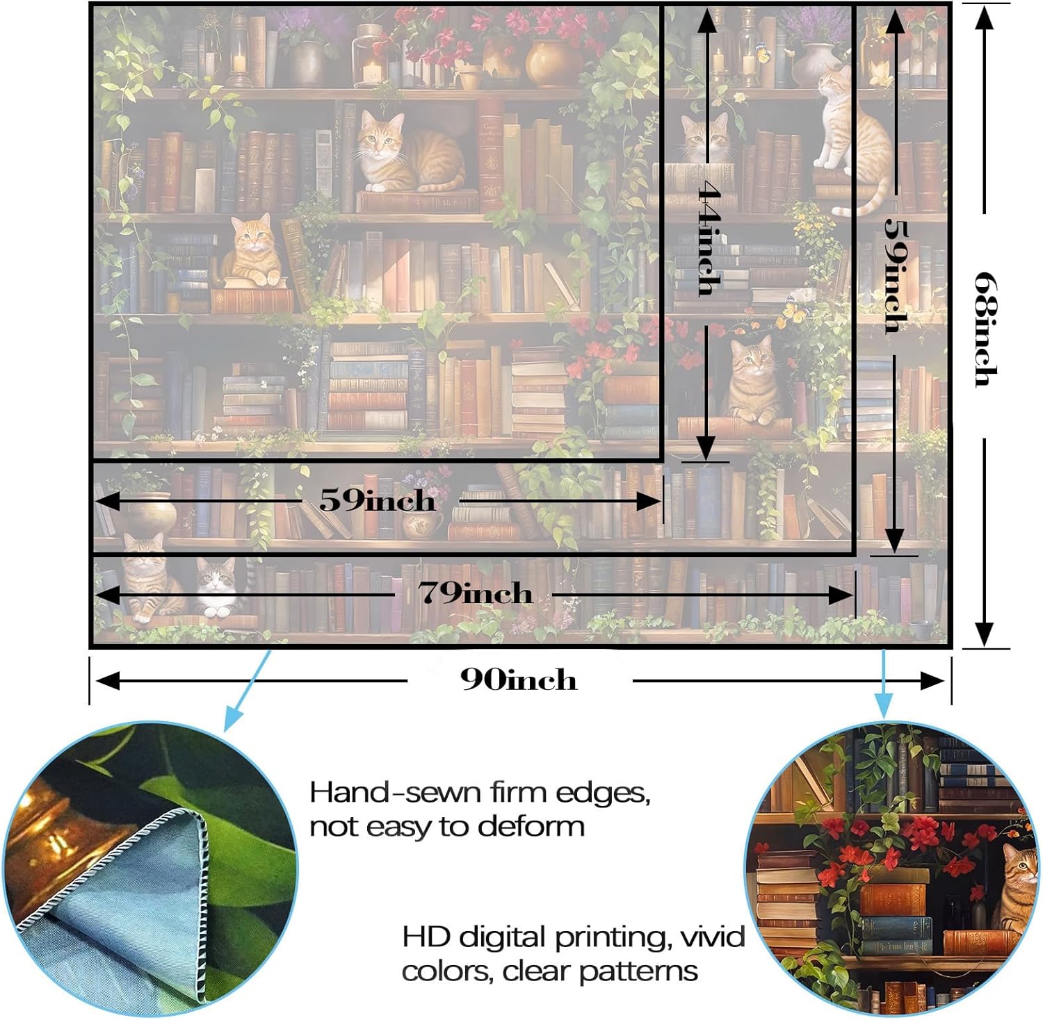 - Multiple Size Options: Available in 90L''x 68W'', 80L''x 60W'', and 60L''x 44W''(L for longer side, W for shorter side). These book tapestries fit various spaces—from large living room walls to small bedroom accents, ensuring a tailored decor solution
