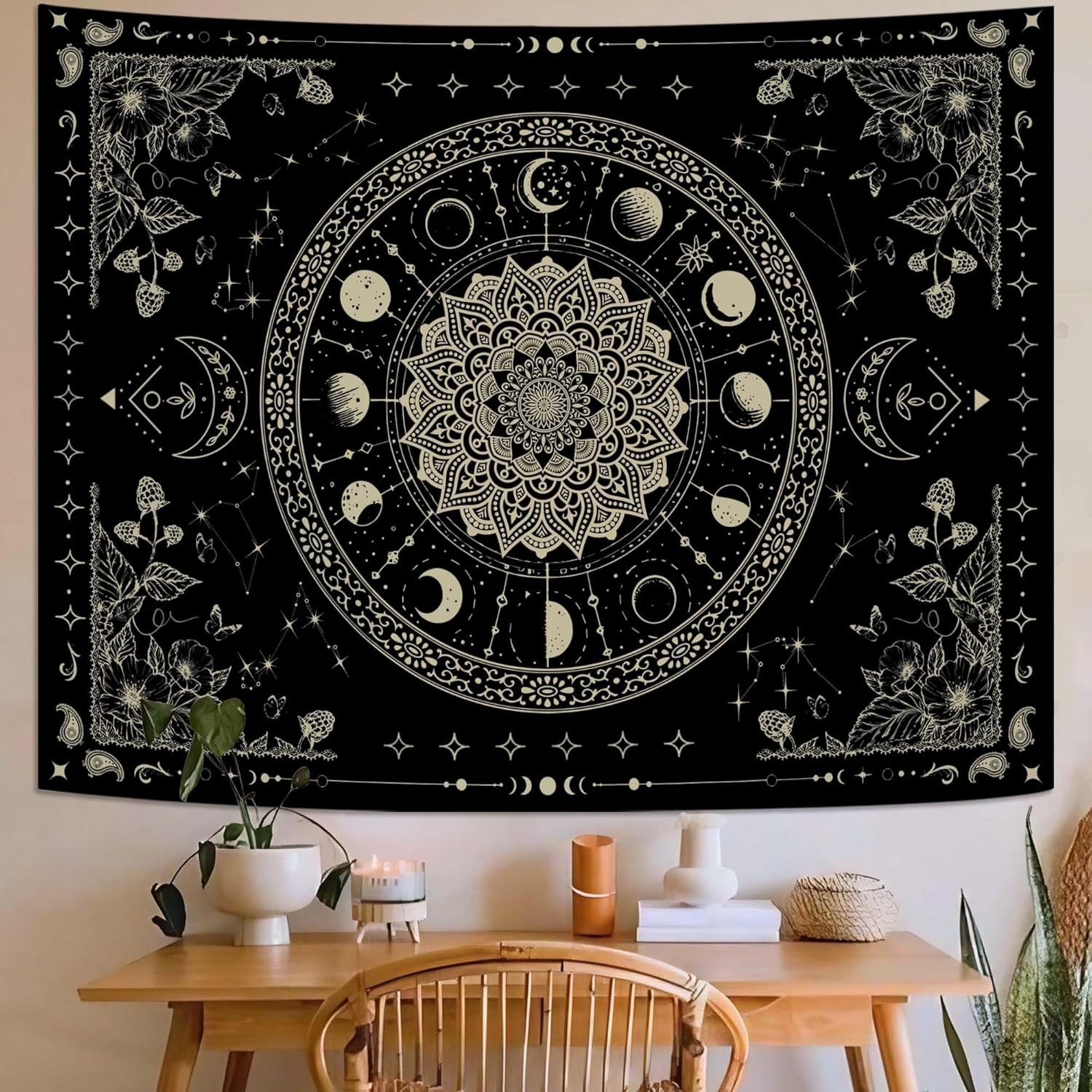 Lunerfex Mandala Moon Tapestry Boho Tapestry for Bedroom Black Tapestries Wall Hanging Living Room Wall Art and Home Decor 44x60