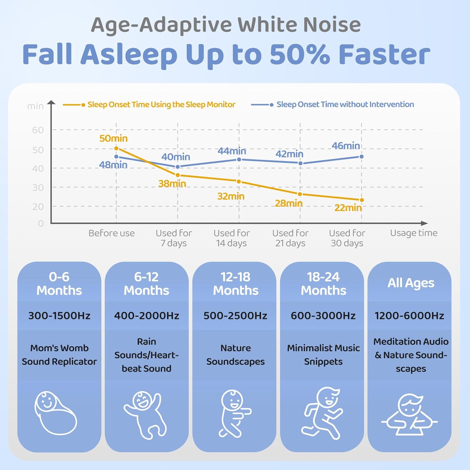2025 Mom's Choice Awards | White Noise Sound Machine Baby with Night Light, Cry Detection,100 Soothing Sounds, App Control, 150% Battery Life, 50% Faster Sleep, Newborn Essentials