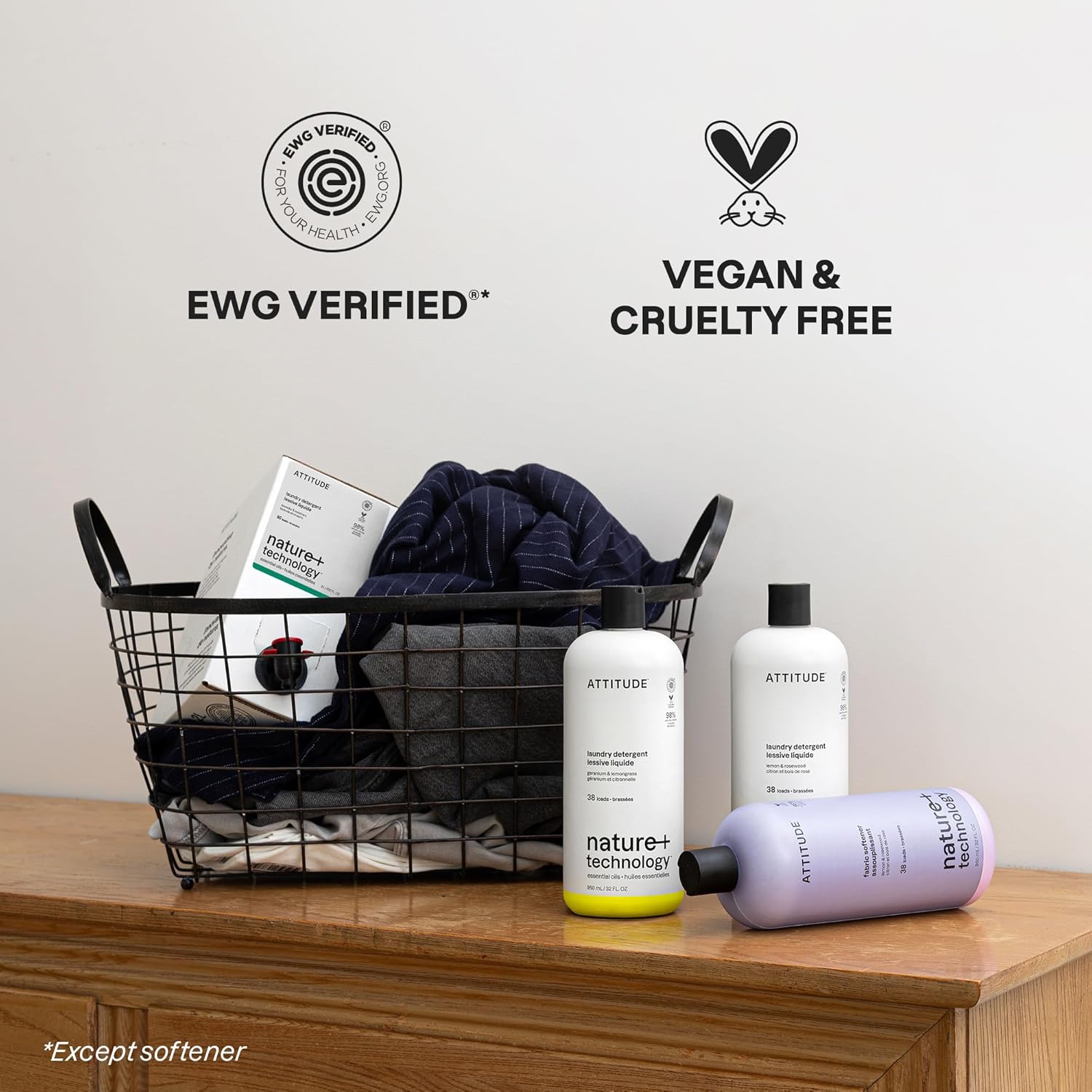 ATTITUDE Liquid Fabric Softener, Natural Origin Ingredients, For White and Colored Clothing, Deodorizes, Gentle on Delicate Skin, Lemon & Rosewood, 38 Loads, 32 Fl Oz
