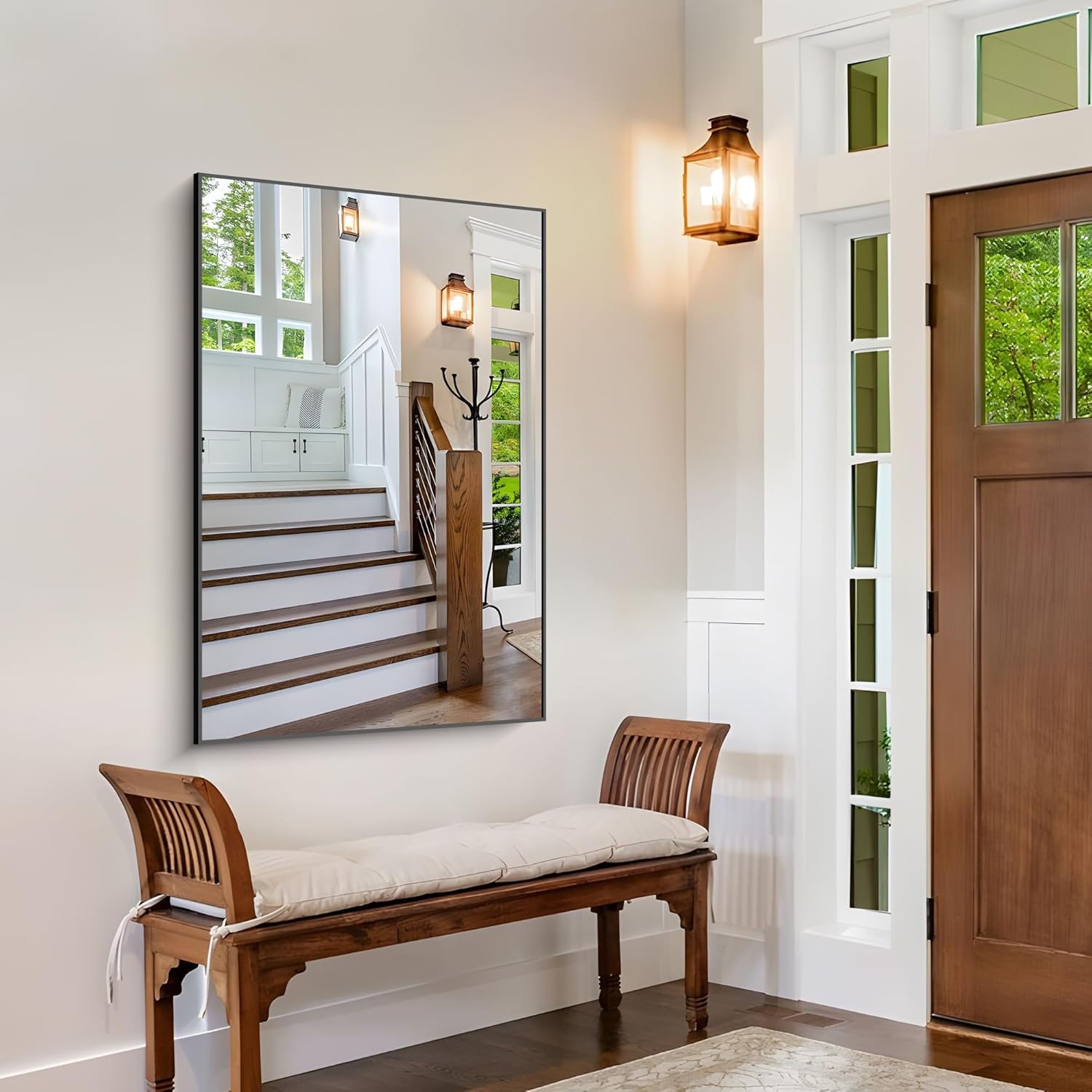 Black Bathroom Mirror for Wall, 30x50 Inch Rectangle Mirrors with Metal Frame, Modern Vanity Wall Mirror Decor for Bathroom Living Room, Entryway Hangs Horizontal or Vertical