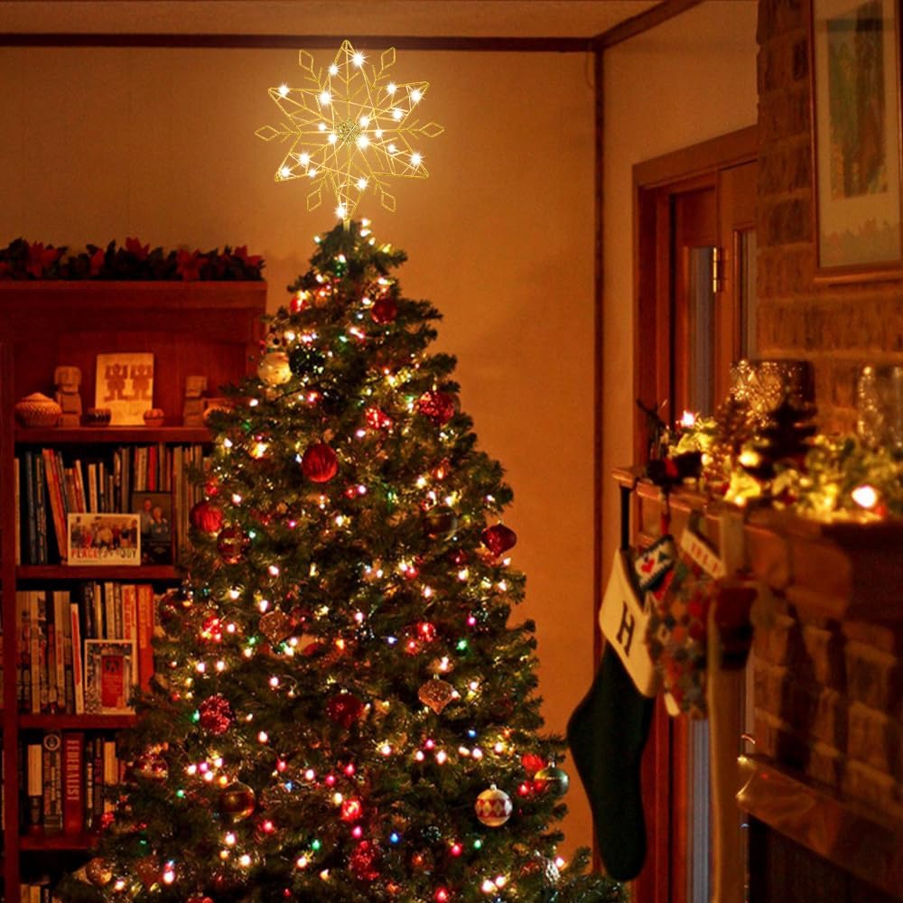 - 🎅Perfect Christmas Gift --- These tree toppers are crafted from durable steel, providing you with season after season of inspiring holiday beauty. Light up your Christmas tree in starry style with pre-lit tree topper. Ideal Christmas gift for your family, friends, colleagues, neighbors...