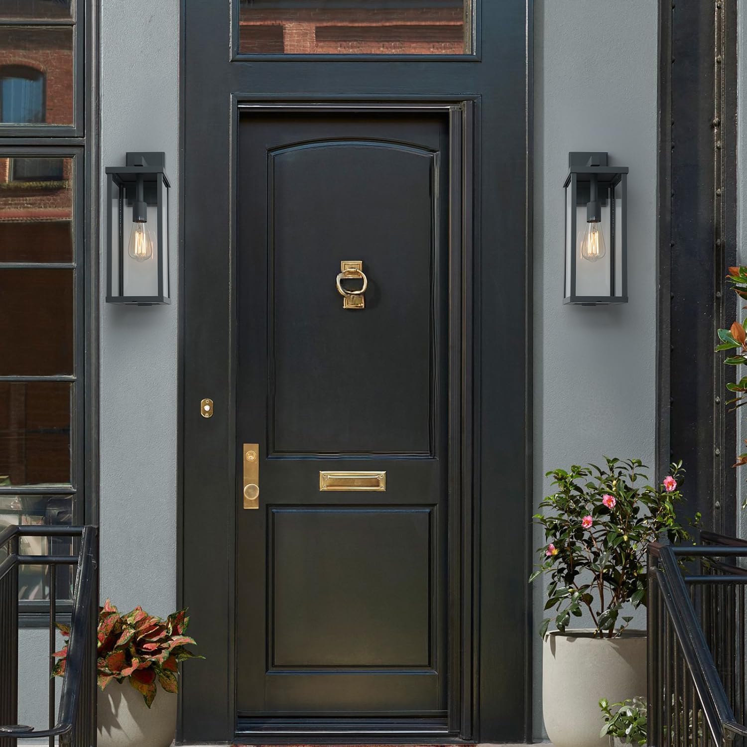 mirrea 18" Classic Outdoor Wall Sconce 1 Light in Matte Gray Rectangular Metal Frame and Clear Glass Shade Waterproof Porch Light Patio Light Pack of 2