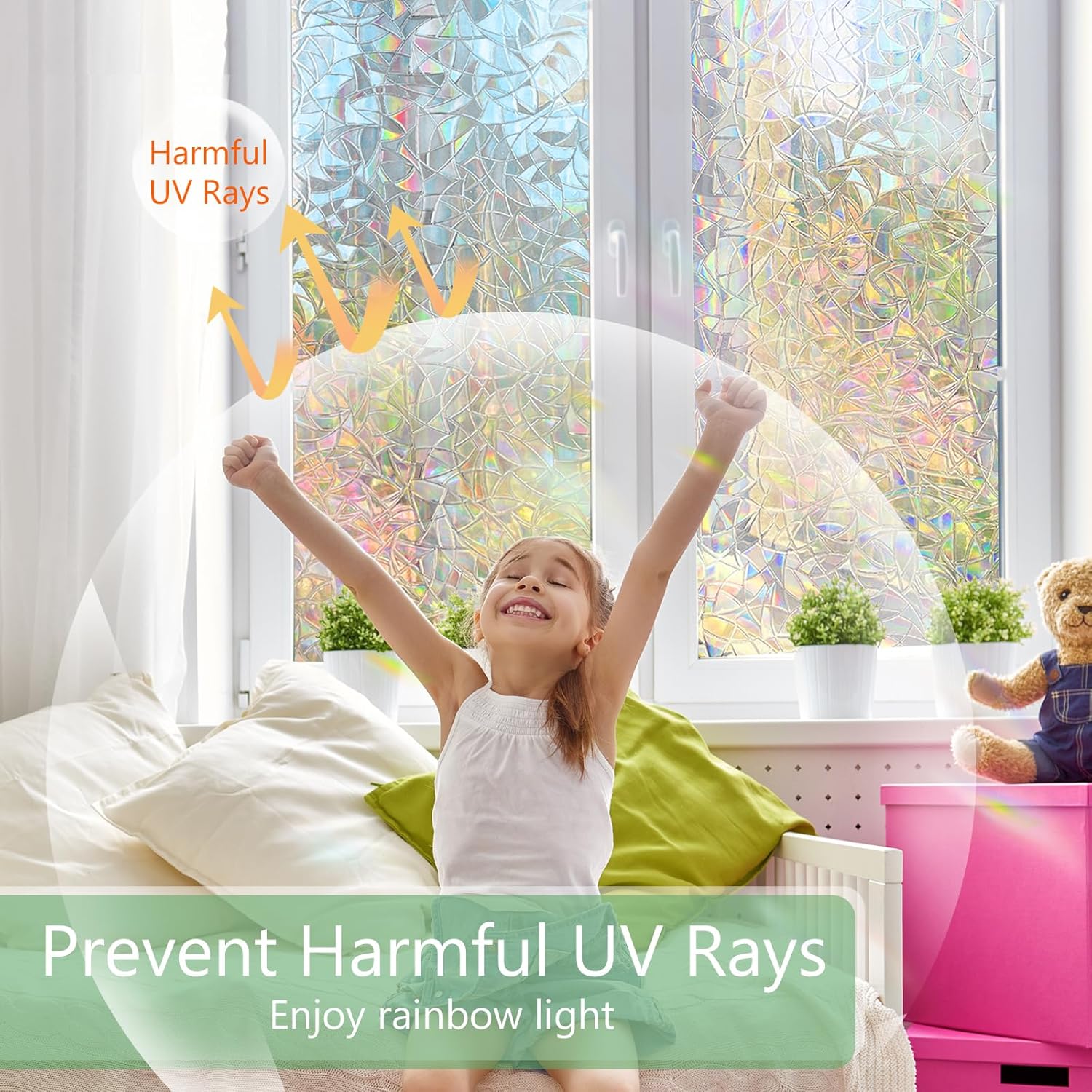 HIDBEA Window Privacy Film Static Clings, Rainbow Window Film, 3D Decals Non-Adhesive Window Vinyl Film for Home Door, 29.5 Inch x 13.1 Feet