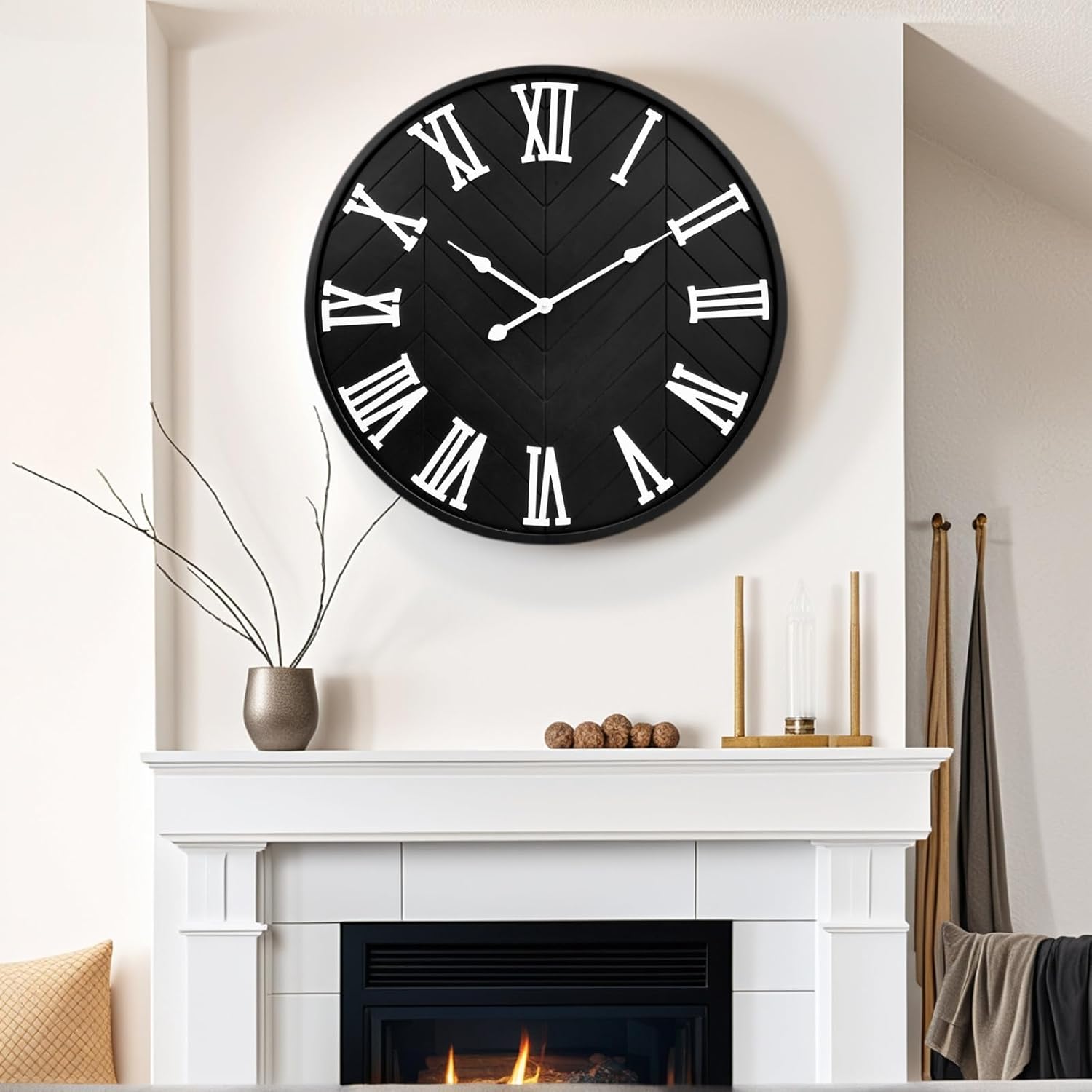 30 Inch Large Wall Clock Farmhouse Style - Black Silent Non-Ticking Rustic Decor for Living Room, Kitchen, Bedroom