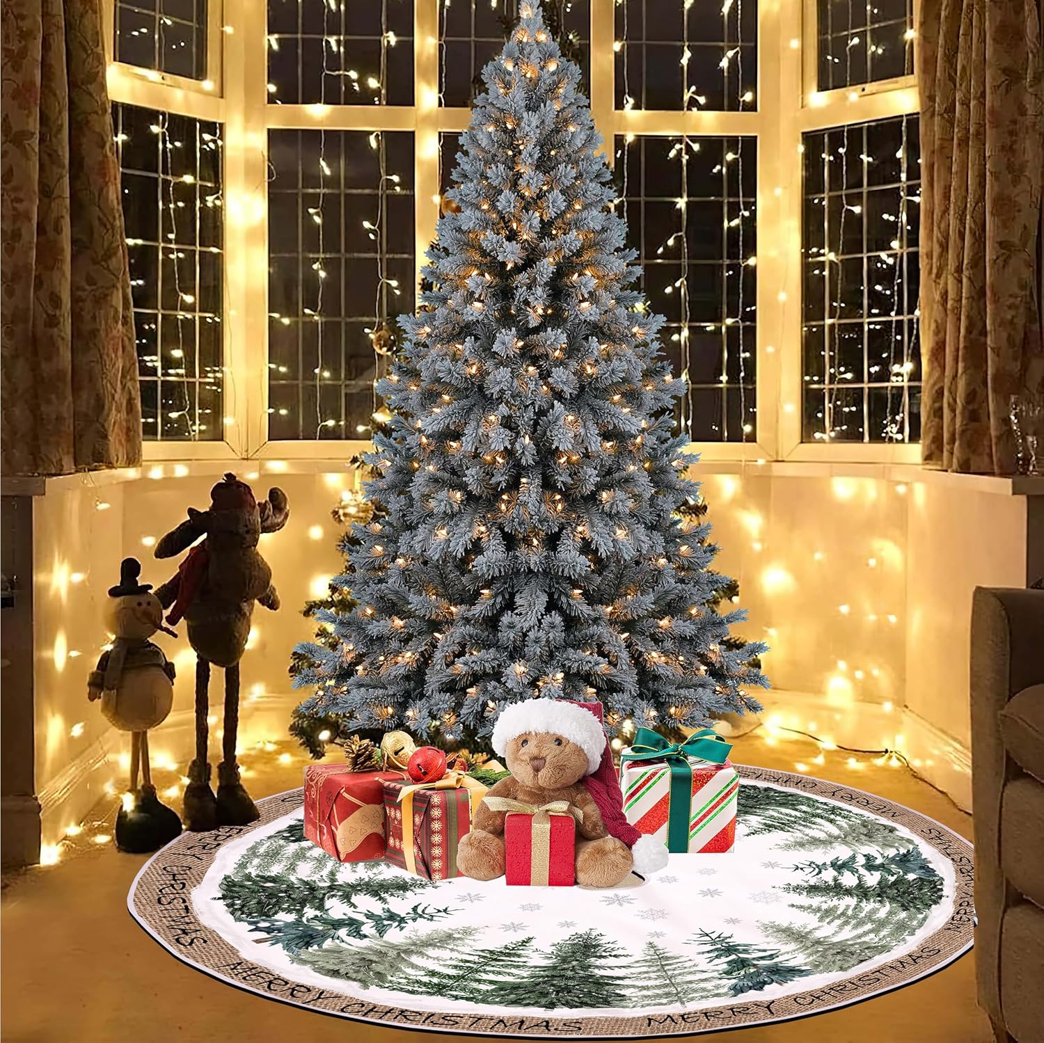 Baccessor Christmas Tree Skirt 36 Inch Pine Trees Snowy Forest Christmas Tree Skirt Collar for Farmhouse Vintage Rustic Merry Christmas Xmas Winter Holiday Party Decoration