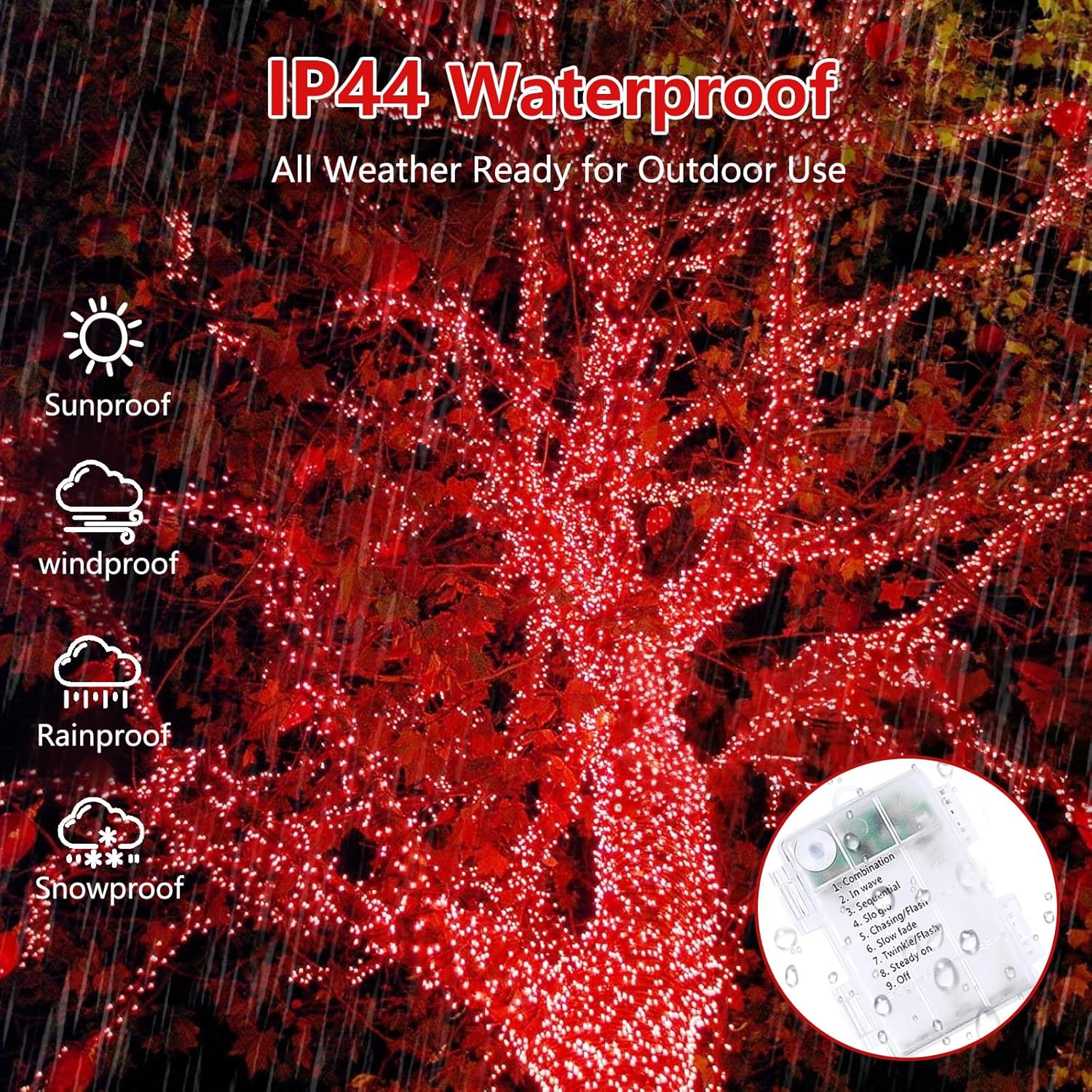 - Ultra-Bright and Durable Battery Powered String Lights: Each Christmas string light is 33 feet, features 100 super bright LEDs and a waterproof battery case with 8 lighting modes to ensure longevity and reliability. The red Halloween lights emit a classic, scary and dread atmosphere in the dark, making them an ideal choice for indoor and outdoor decorations. These fairy lights are perfect for Halloween parties, creating a horrible and spooky atmosphere.