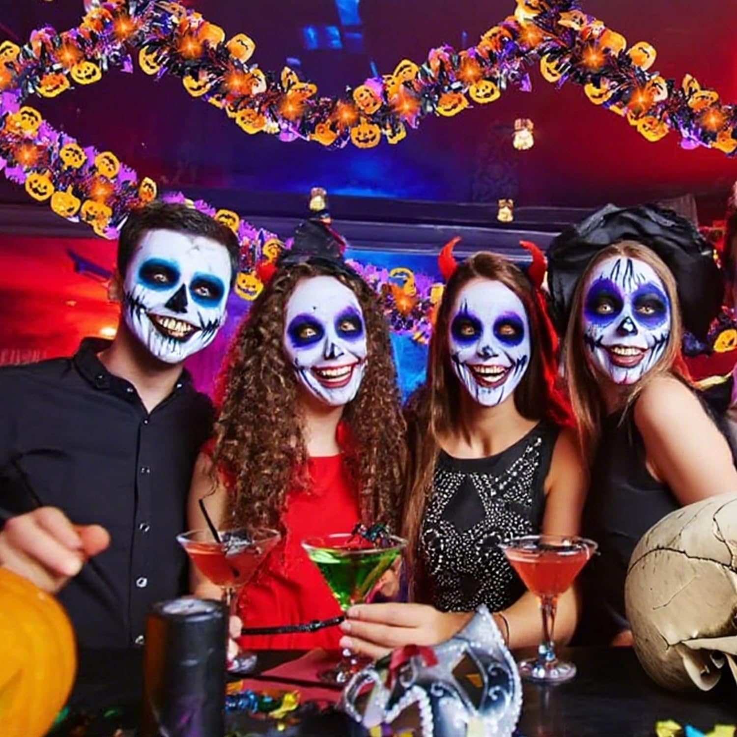 - [Wide Application]-You can hang this Halloween garland on walls,doors,ceilings,tables,stairs, windows,branches,etc.The Halloween garland have metal wires inside,and you can change the shape and length according to your needs.Perfect for Halloween,horror themed parties,home,stores during the holidays to add more scary Halloween atmosphere.