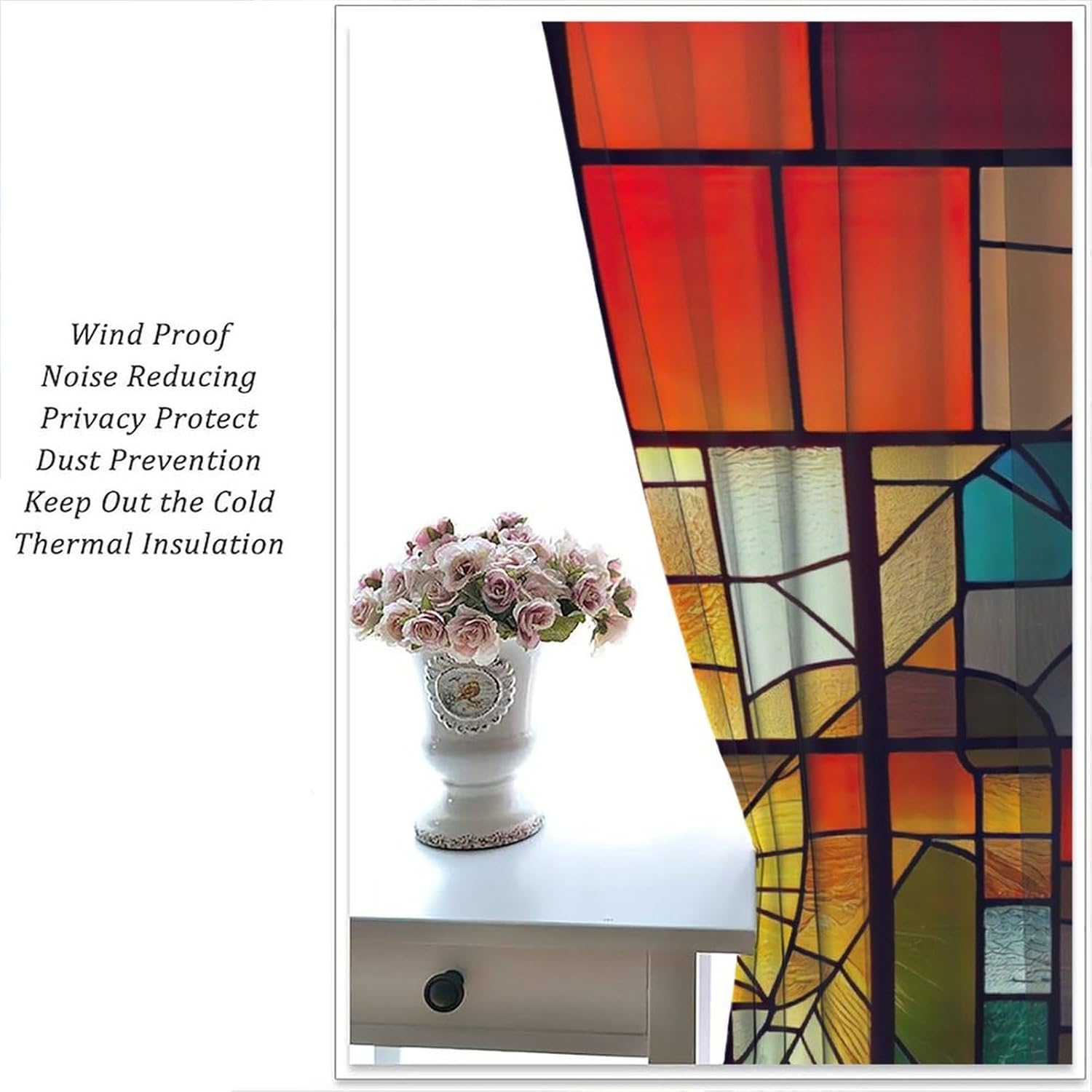 Stained Glass Curtains,Retro Abstract Colorful Geometry Textures Art Home Decor Drapes for Bedroom Living Room Kitchen Window Treatment 2 Panels Set Total Size 55" W X 63" L Inch