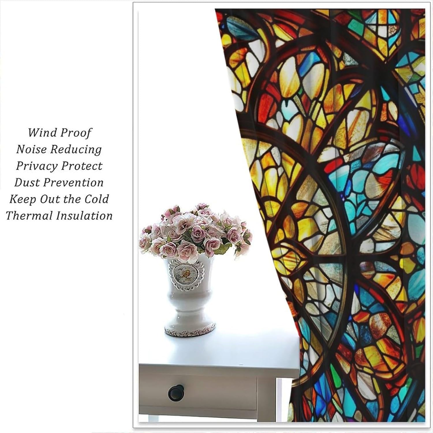 Stained Glass Curtains,Retro Mid Century Abstract Colorful Geometric Prints Home Decor Drapes for Bedroom Living Room Kitchen Window Treatment 2 Panels Set Total Size 42" W X 63" L Inch
