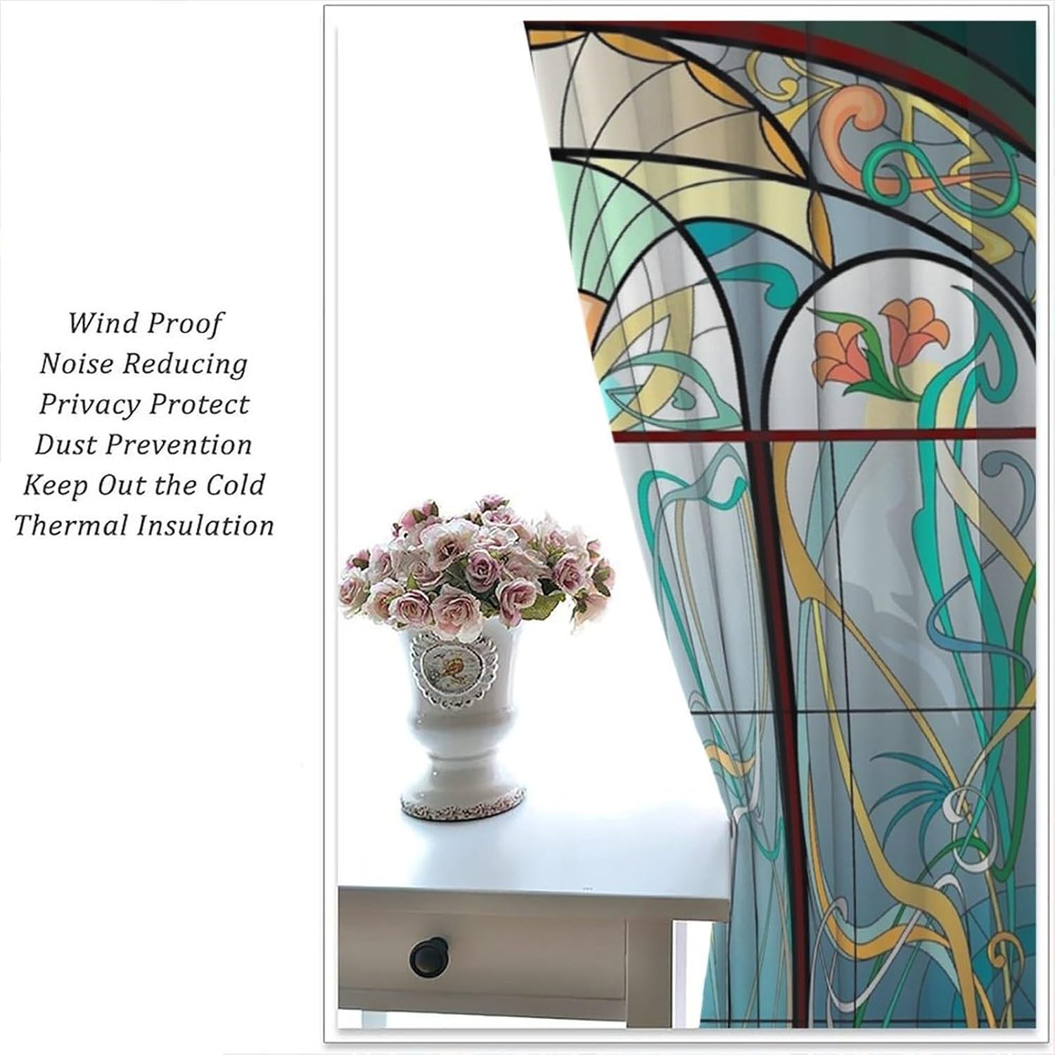 Stained Glass Curtains, Retro Mid Century Boho Abstract Art Home Decor Drapes for Bedroom Living Room Kitchen Window Treatment 2 Panels Set Total Size 63" W X 72" L Inch