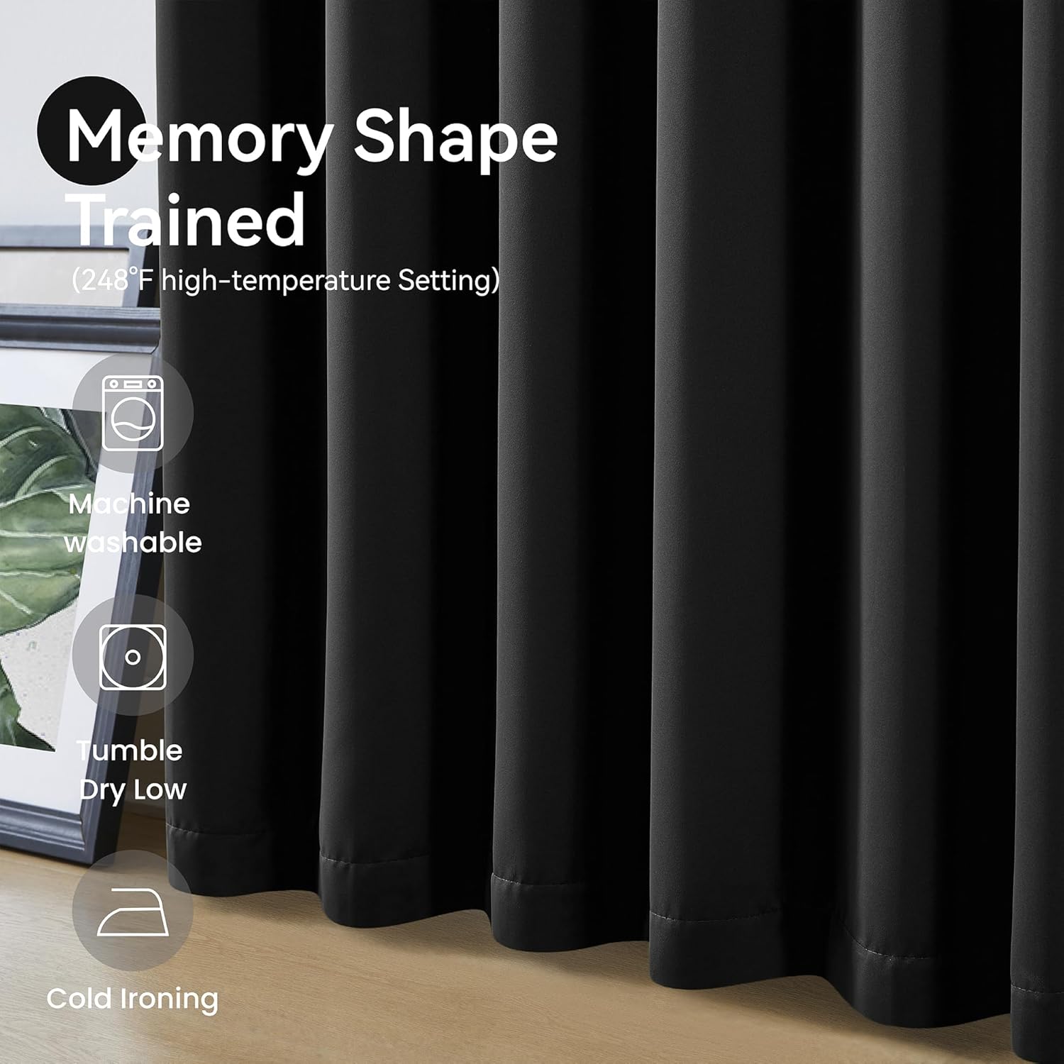 KangBang Pinch Pleated 108 Inch Long Blackout Curtains 2 Panels Set, Thermal Insulated Energy Saving Privacy Draperies for Sliding Door Doorway with Hooks Track System,40”Wx108”L, Black