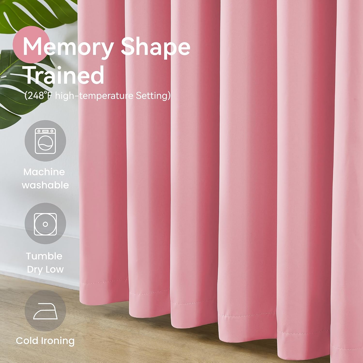 KangBang Pink Long Curtains 120 Inches Long, Pinch Pleat Blackout Curtains for Living Room Soundproof Sliding Door Aesthetic Window Panels for Traverse Rod with Hooks,2 PCs,40Wx120L