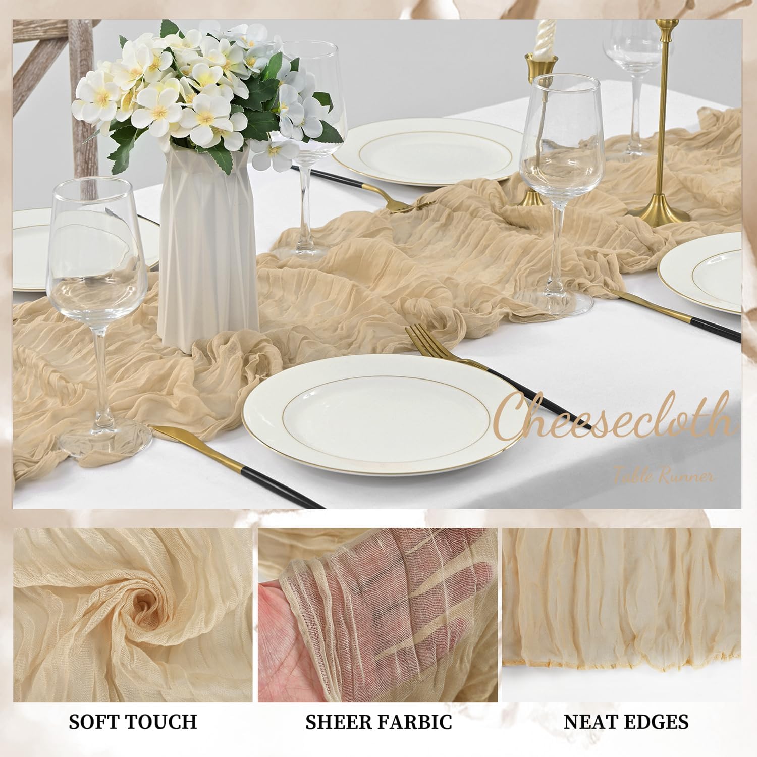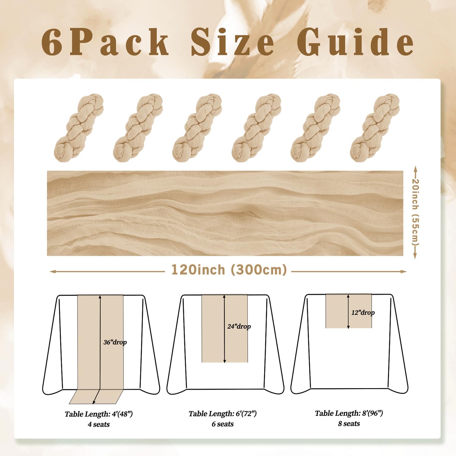 Sand 6 Pack 10FT Cheesecloth Table Runner 20 x 120 Inch Long Rustic Gauze Cheese Cloth Table Runner for Wedding Bridal Baby Shower Table Decorations Boho Fabric Sheer Birthday Party Table Decor
