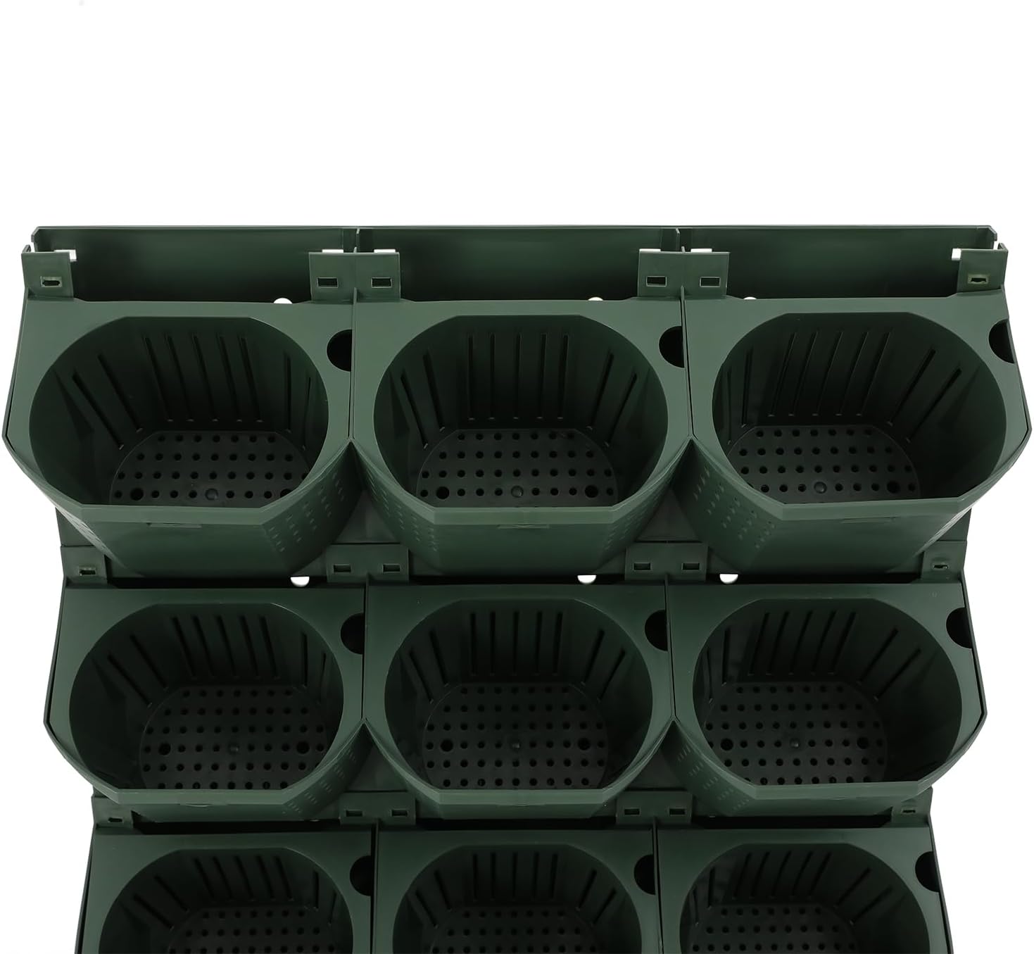 12Pieces 3-Pot Wall Planter Vertical Garden Plant Walls Wall Mounted Vertical Planter with Water-Storage Layer Stackable Wall-Mounted Flower Pot for Gardens, Balconies 180.78lbs Total Capacity (Green)