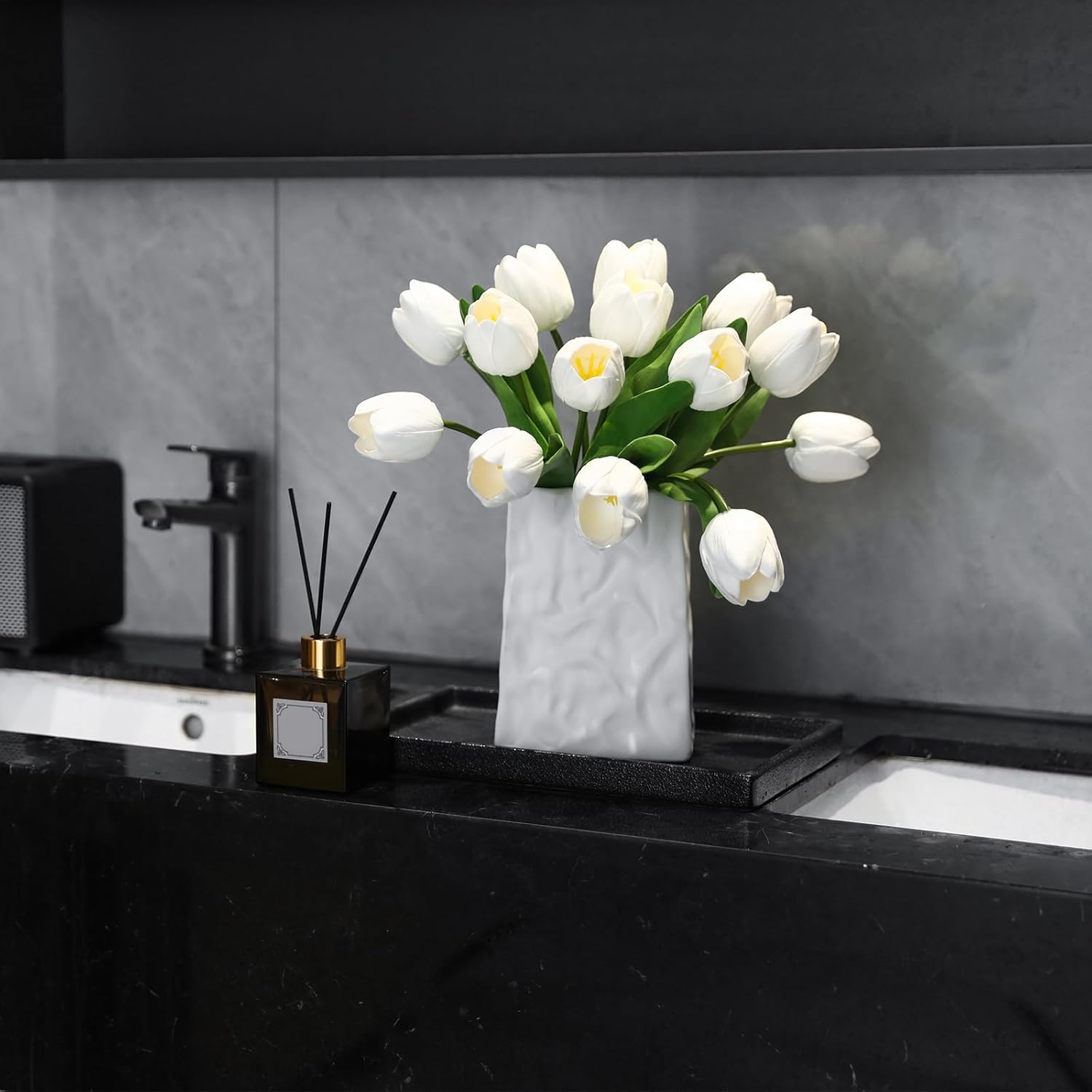 White Artificial Tulips, 2 Bundles 14Pcs, Fake Tulips Artificial Flowers, 2 x 2.4 Inch Large Flower Head Big Tulip, Easter Valentine's Day Mother's Day Home Decoration Flowers