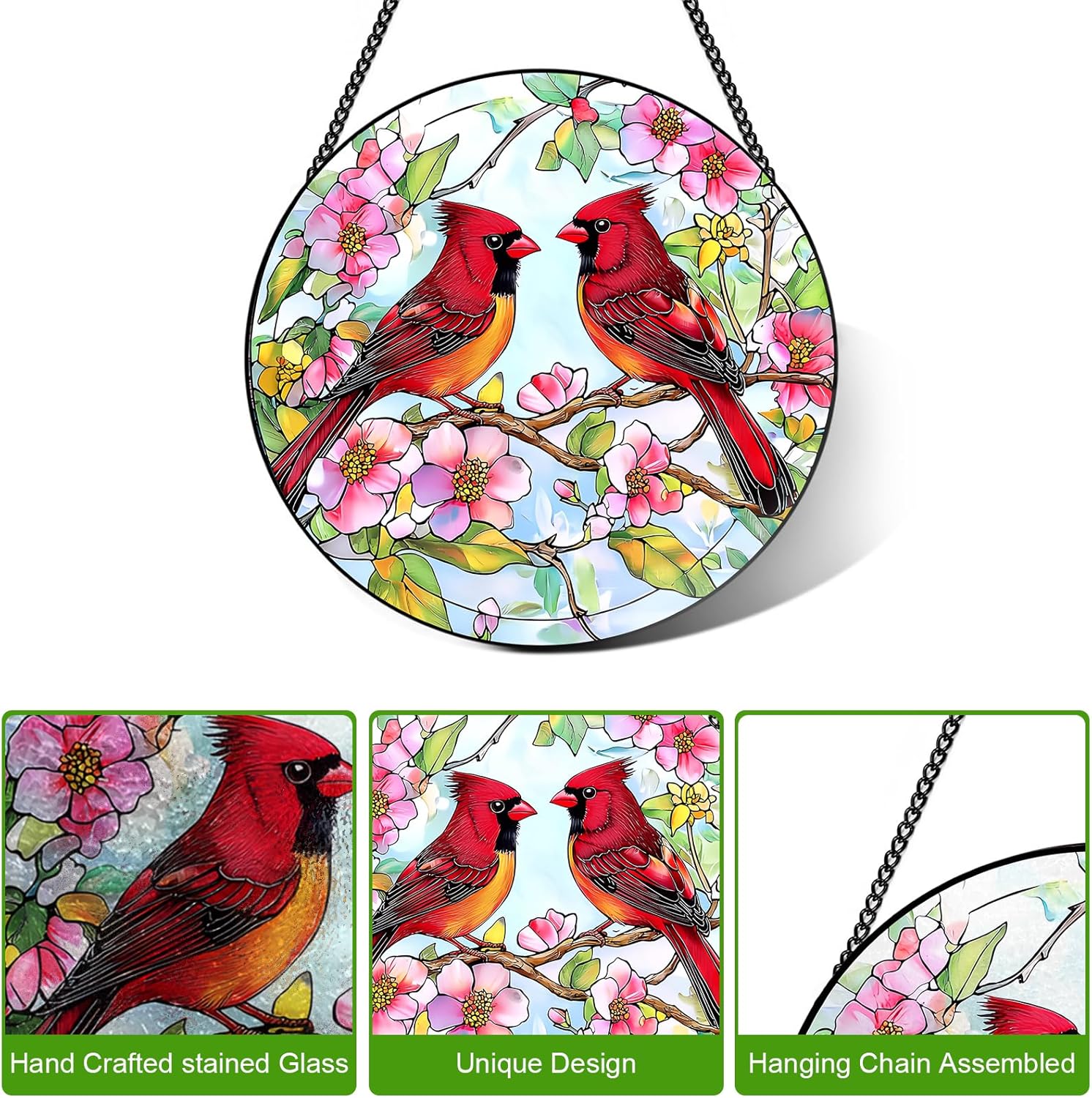 - Exquisite Design: Finished with vibrant stained glass, this Red Cardinal suncatcher captures sunlight beautifully, adding warmth to any space
