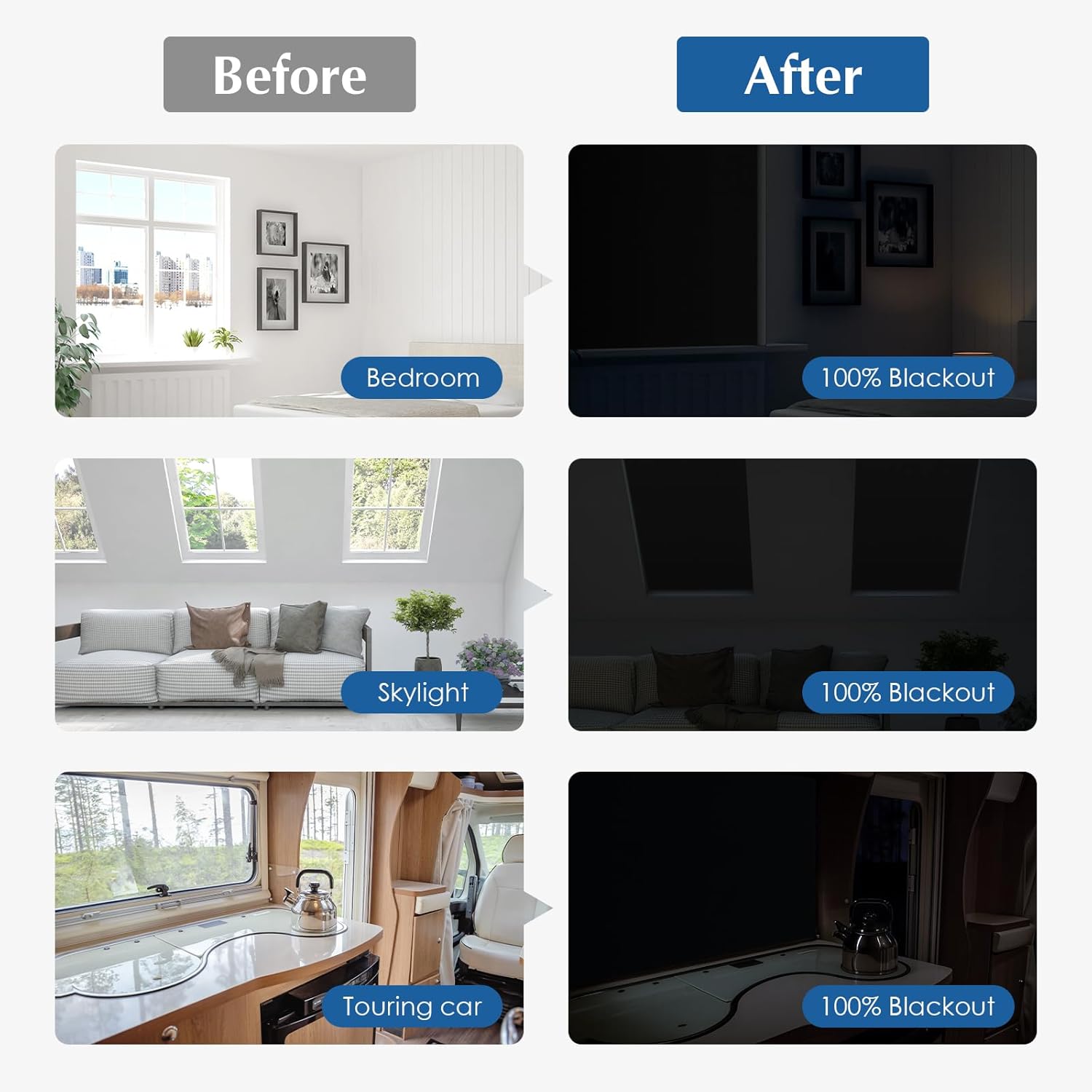 - ăCut to Any SizeăNo drill blackout blinds and Easy to install within minutes. This removable blackout window cover is not like usual curtain, it can be easily cut to any shapes you need. Prefect suited for skylights, curved windows, casement windows, sliding windows, bay windows. It's better to cut the window blackout cover oversized compared to the window to minimize the light entering.