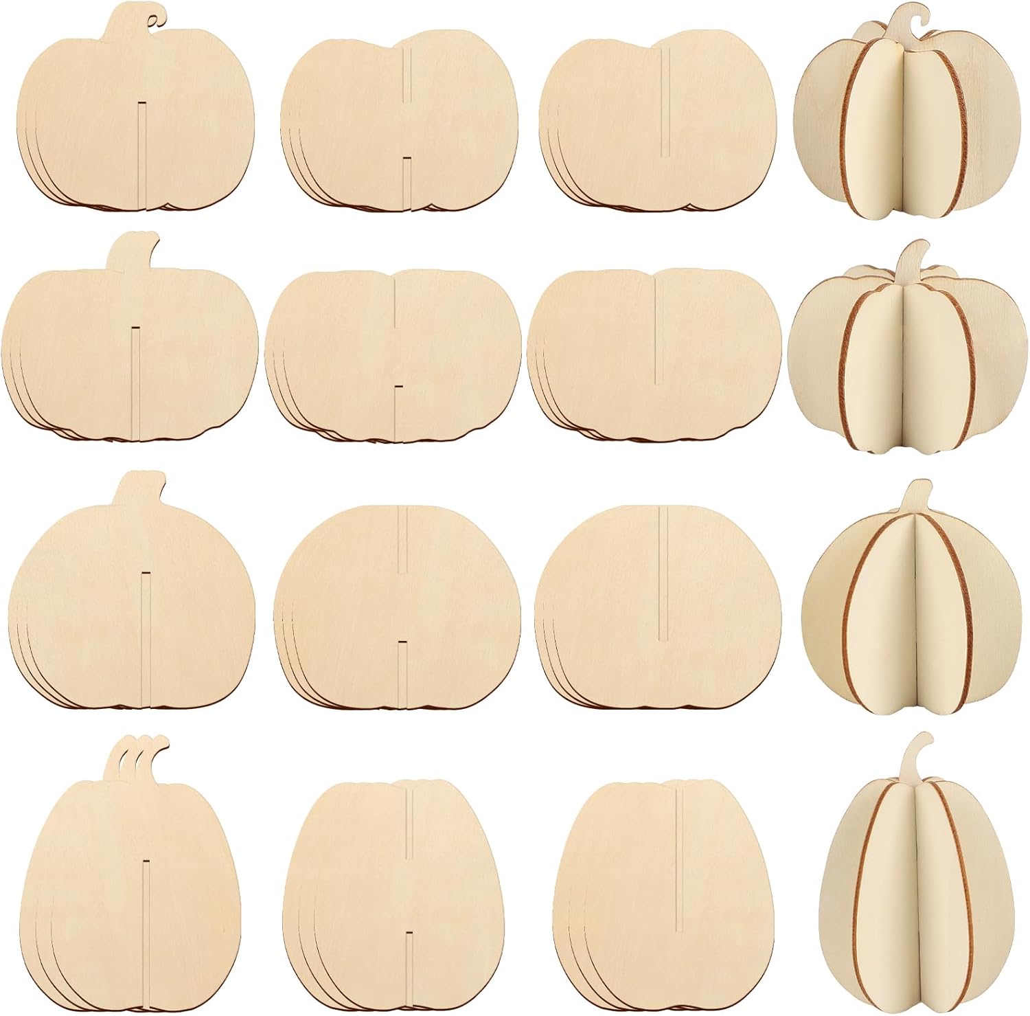 COCHIE DIY Fall 3D Pumpkins Wood Crafts to Paint for Kids Adults, Paintable Unfinished Wooden Slices for Craft, Pumpkin Cutouts Ornaments for Painting Decorations (24 PCS)