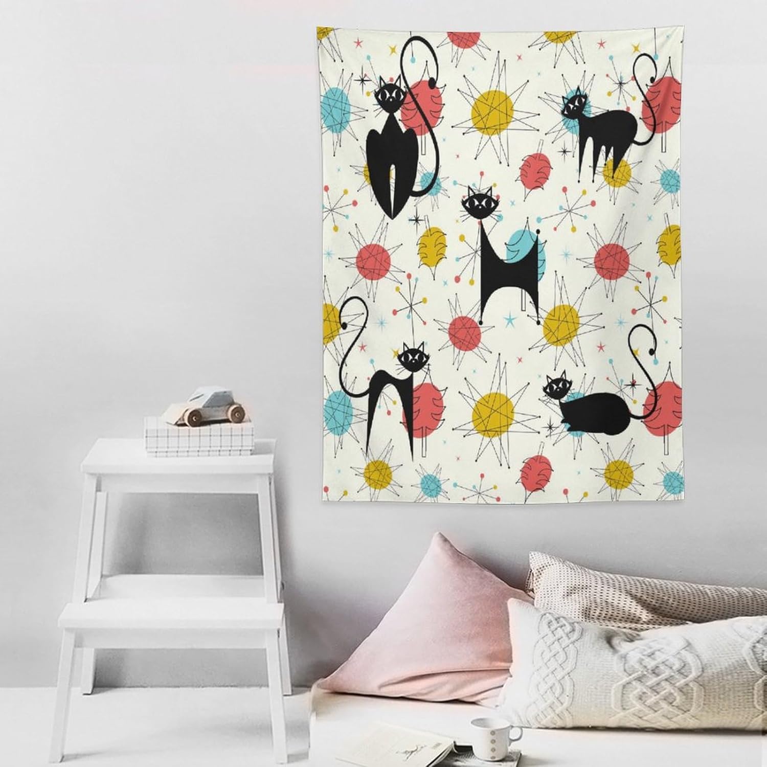 ICMOLYYENLO Abstract Cat Tapestry, Medieval Abstract Atomic Star Cat Vintage Home Wall Hanging Art Tapestry for Bedroom Living Room Dormitory 50x60 Inch