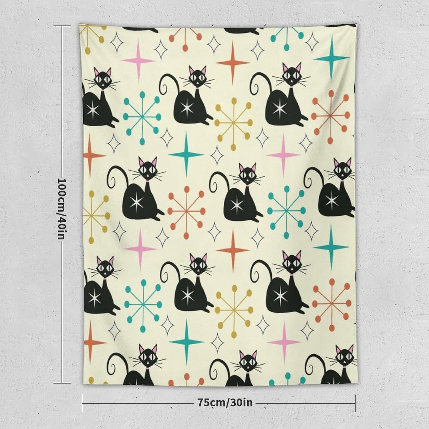 ICMOLYYENLO Abstract Cat Tapestry, Medieval Abstract Atomic Star Cat Vintage Home Wall Hanging Art Tapestry for Bedroom Living Room Dormitory 50x60 Inch