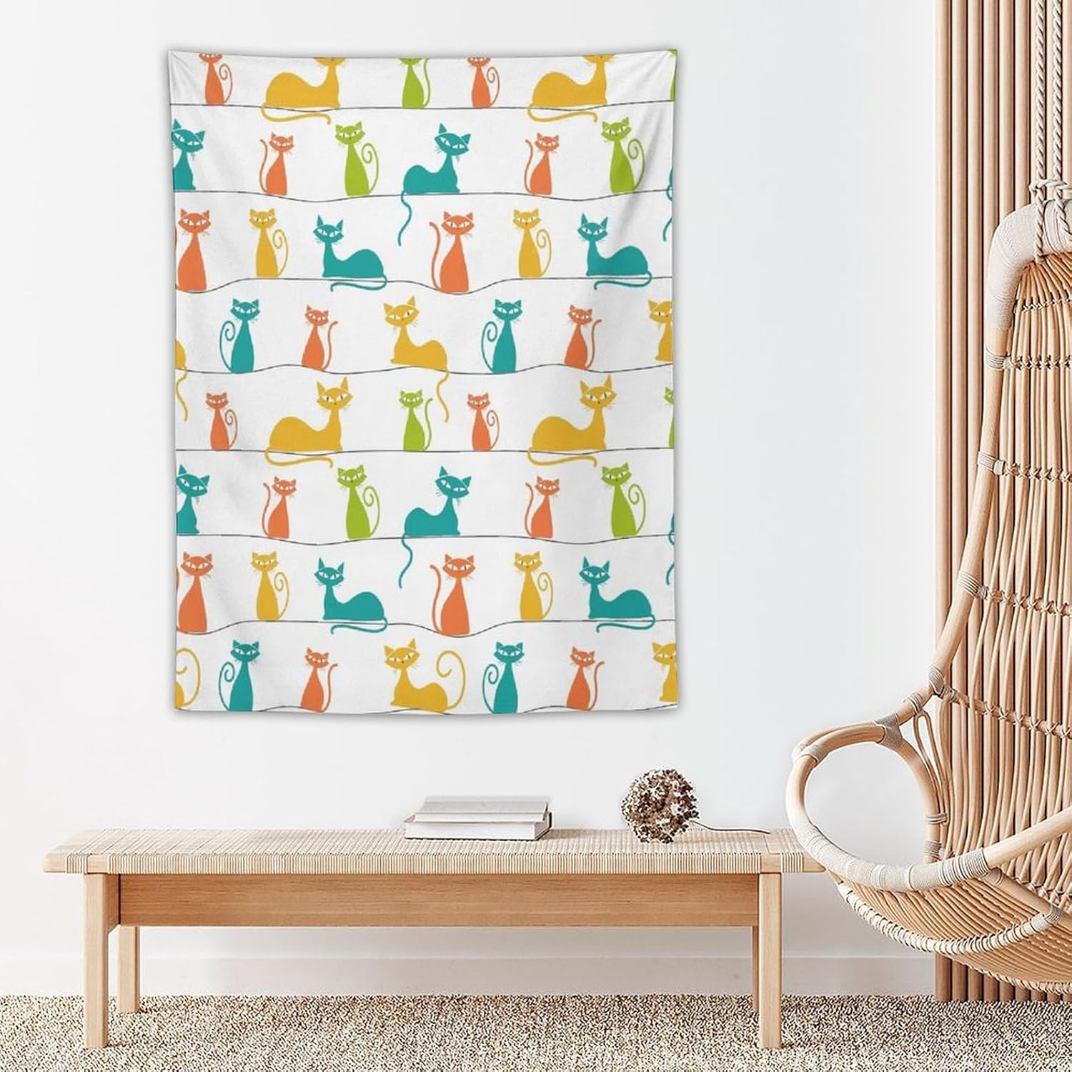 ICMOLYYENLO Boho Medieval Cat Tapestry, Abstract Atomic Starburst Geometric Aesthetic Art Wall Hanging For Bedroom Living Room Dormitory 50x60 Inches