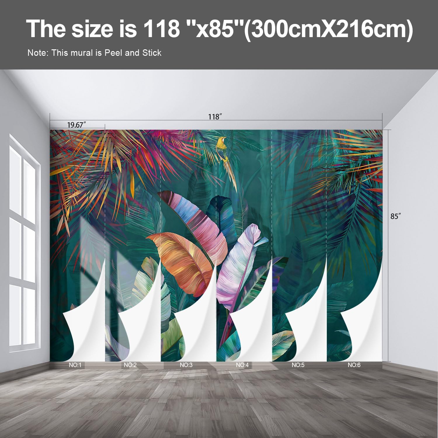Colorful Banana Leaf Wall murals Peel and Stick Wallpaper for Bedroom Living Room - 85"x118"